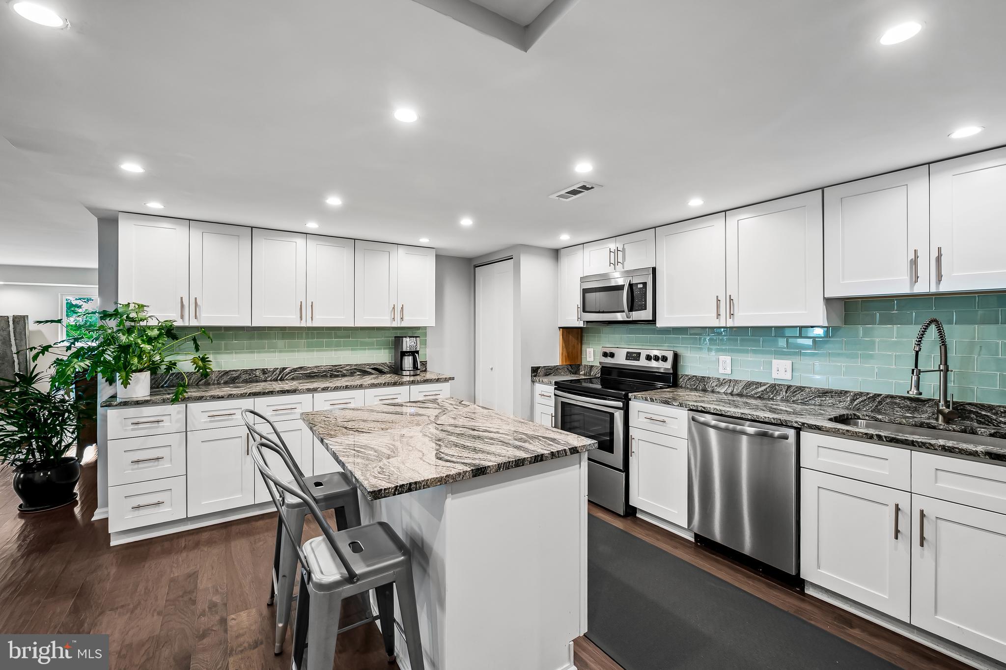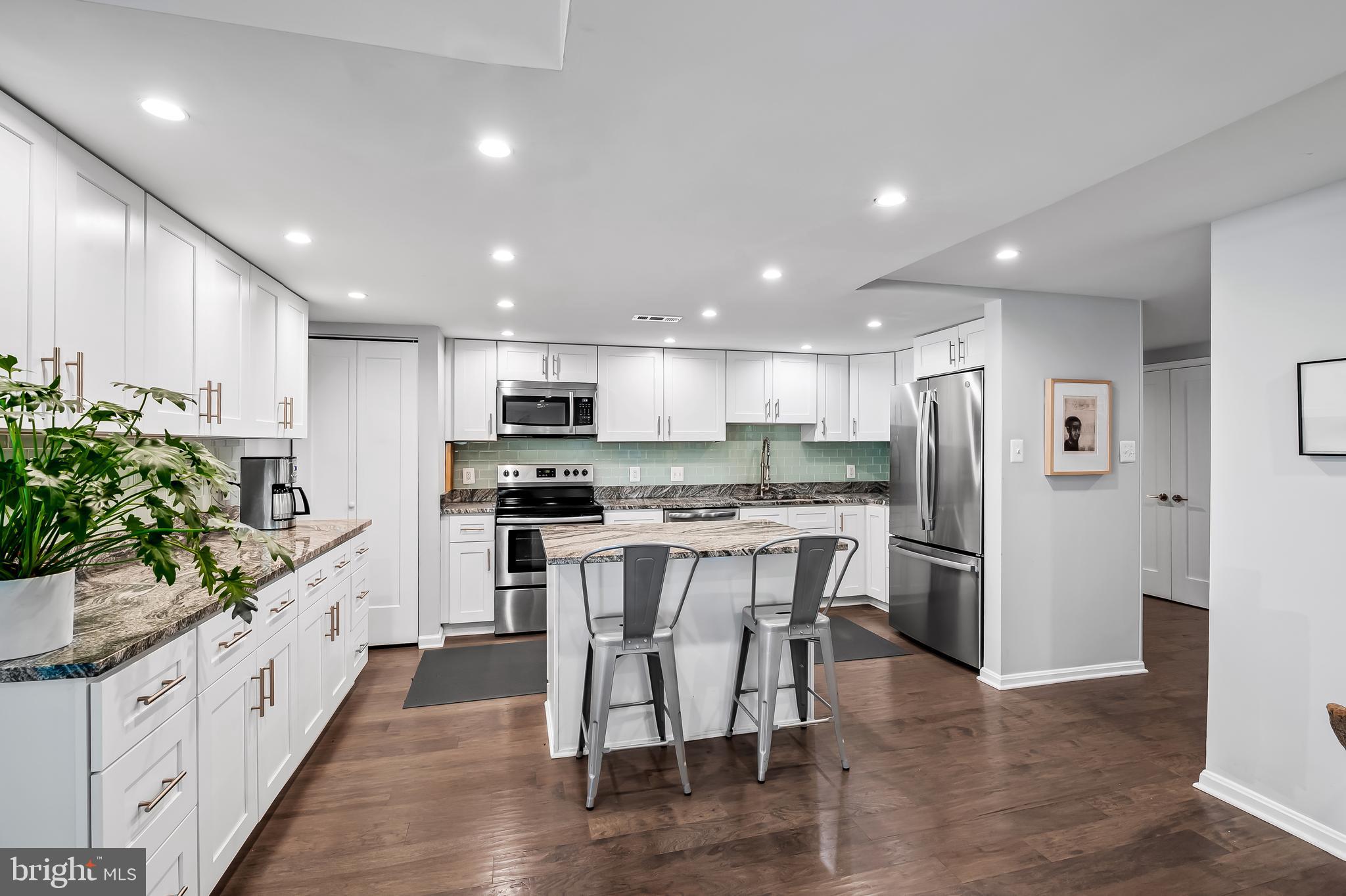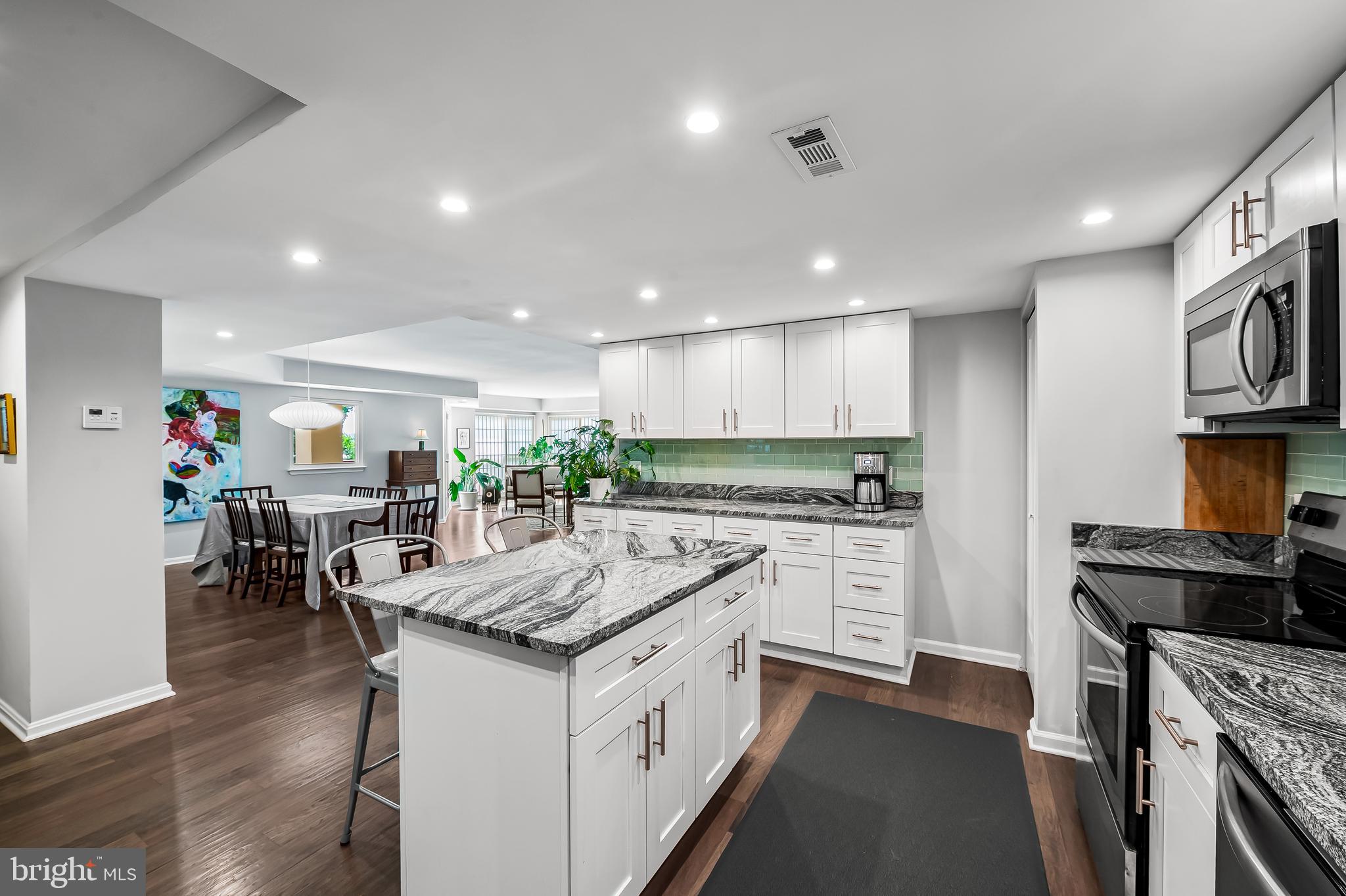 Thoughtfully renovated with high-end finishes throughout, the home features gleaming hardwood floors, recessed lighting, and a flowing open layout that's perfect for both entertaining and everyday living. The chef's kitchen is a showstopper, complete with premium stone countertops, a large center island, and top-of-the-line stainless steel appliances.