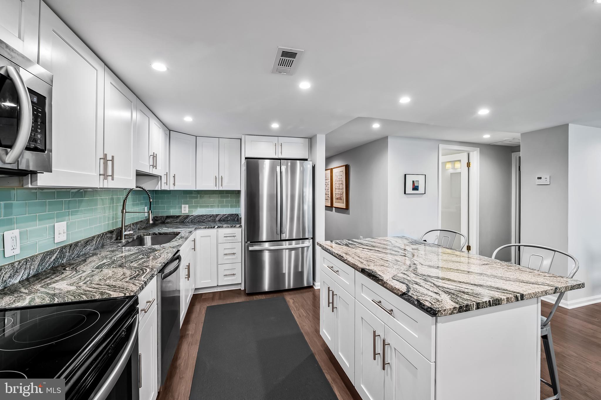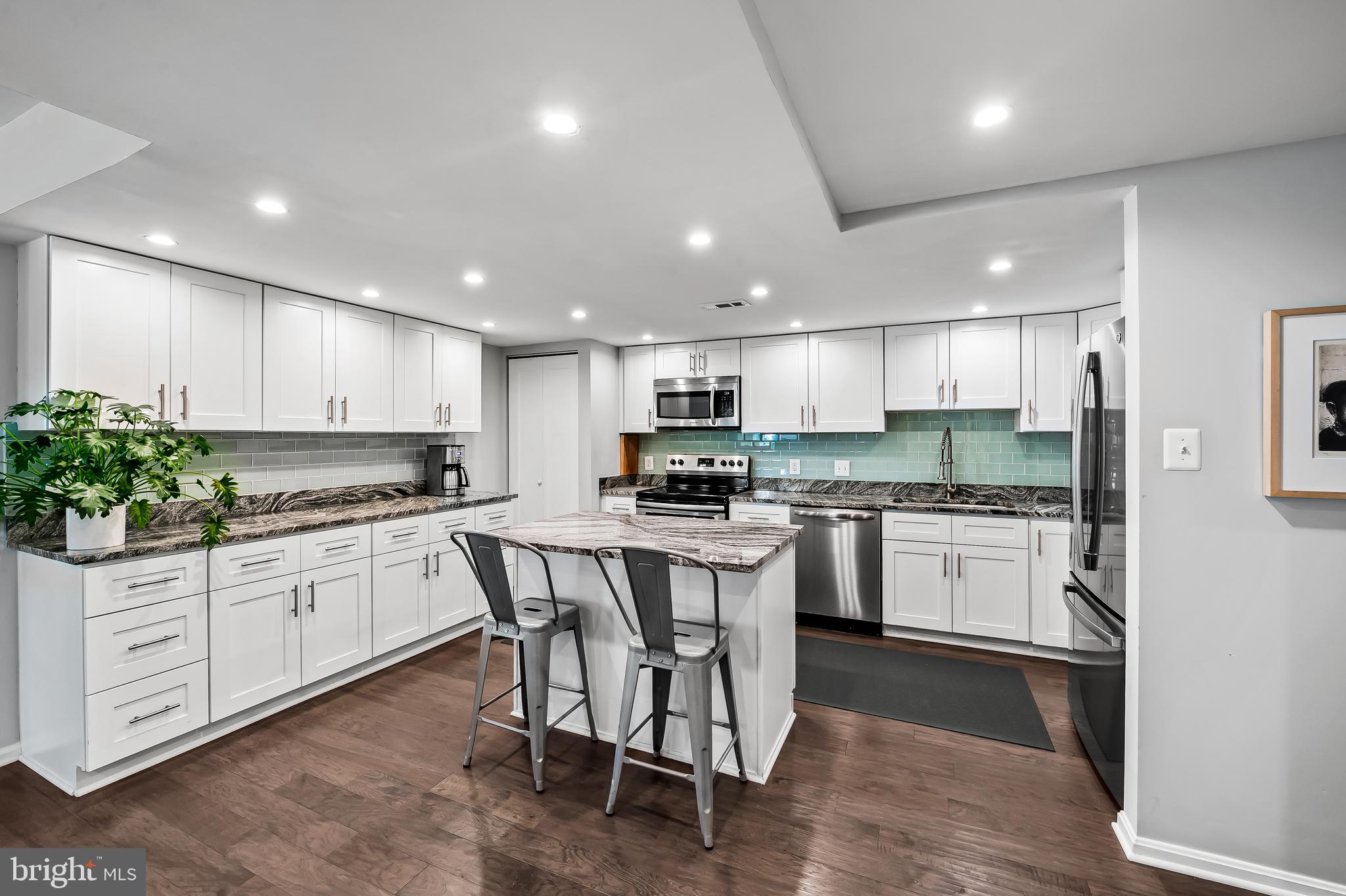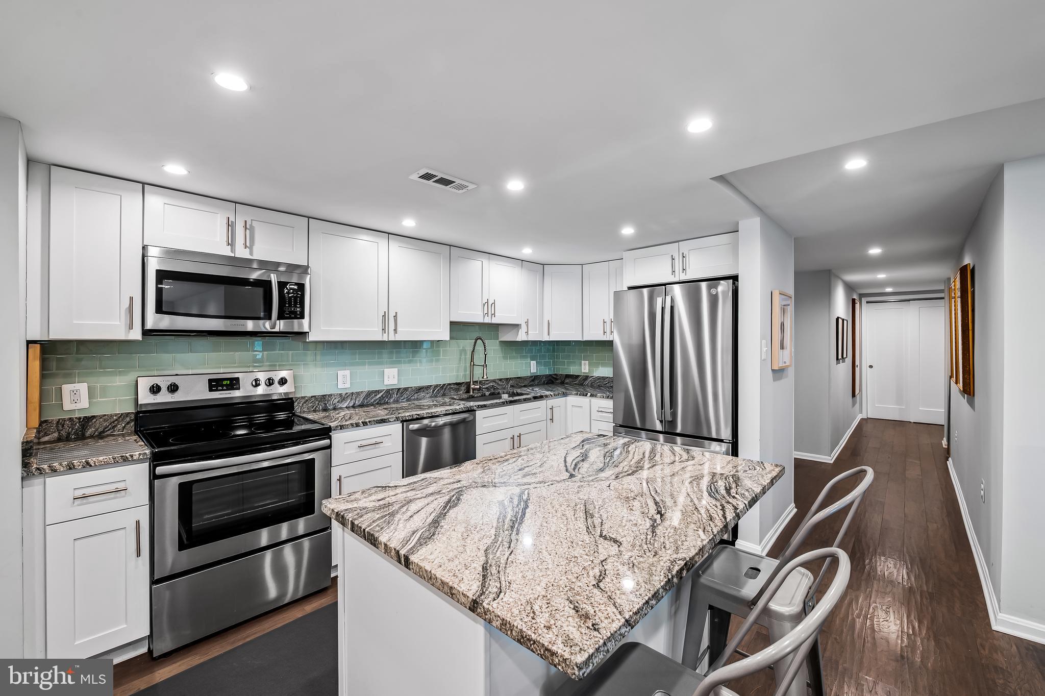 Thoughtfully renovated with high-end finishes throughout, the home features gleaming hardwood floors, recessed lighting, and a flowing open layout that's perfect for both entertaining and everyday living. The chef's kitchen is a showstopper, complete with premium stone countertops, a large center island, and top-of-the-line stainless steel appliances.