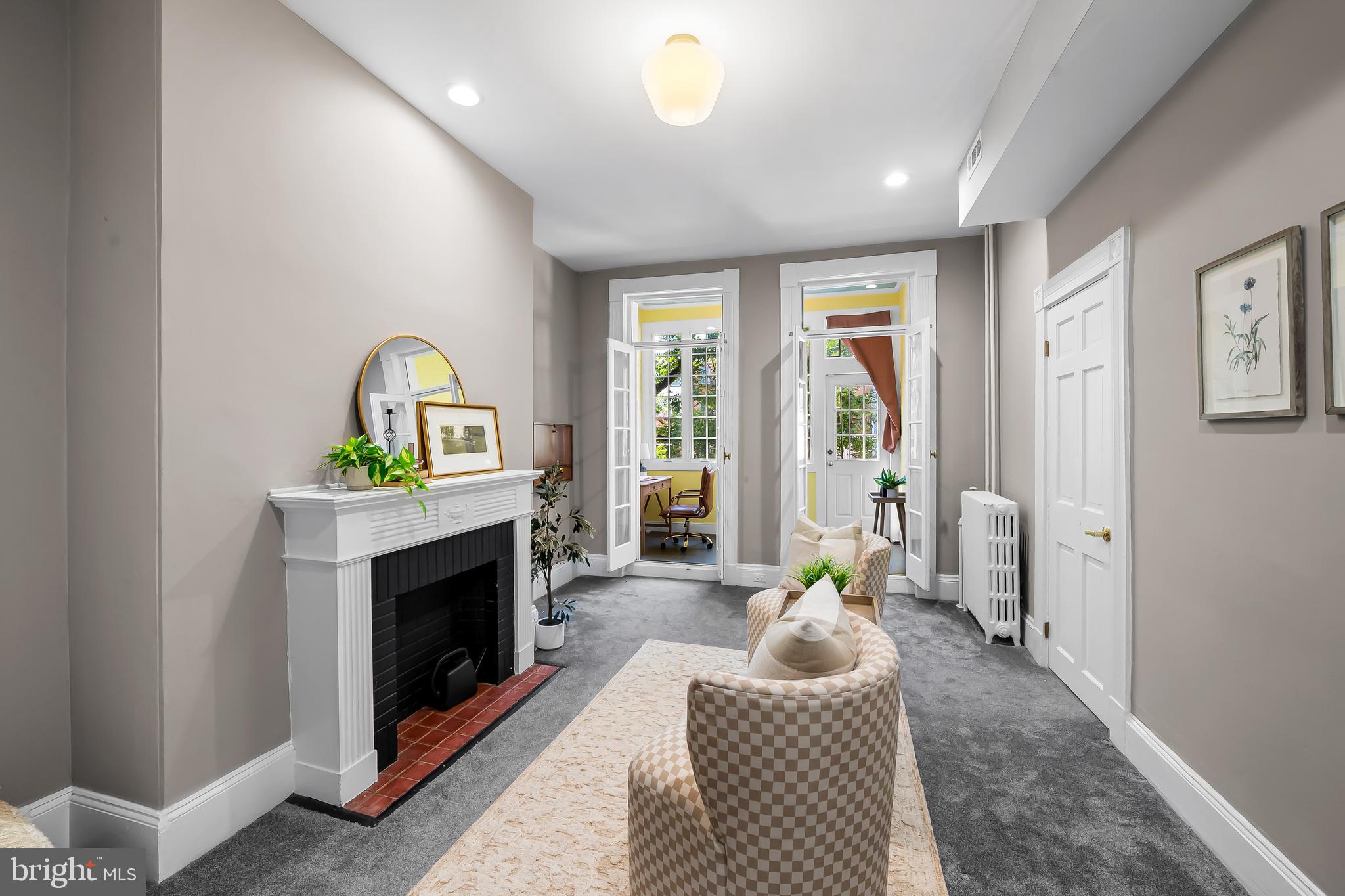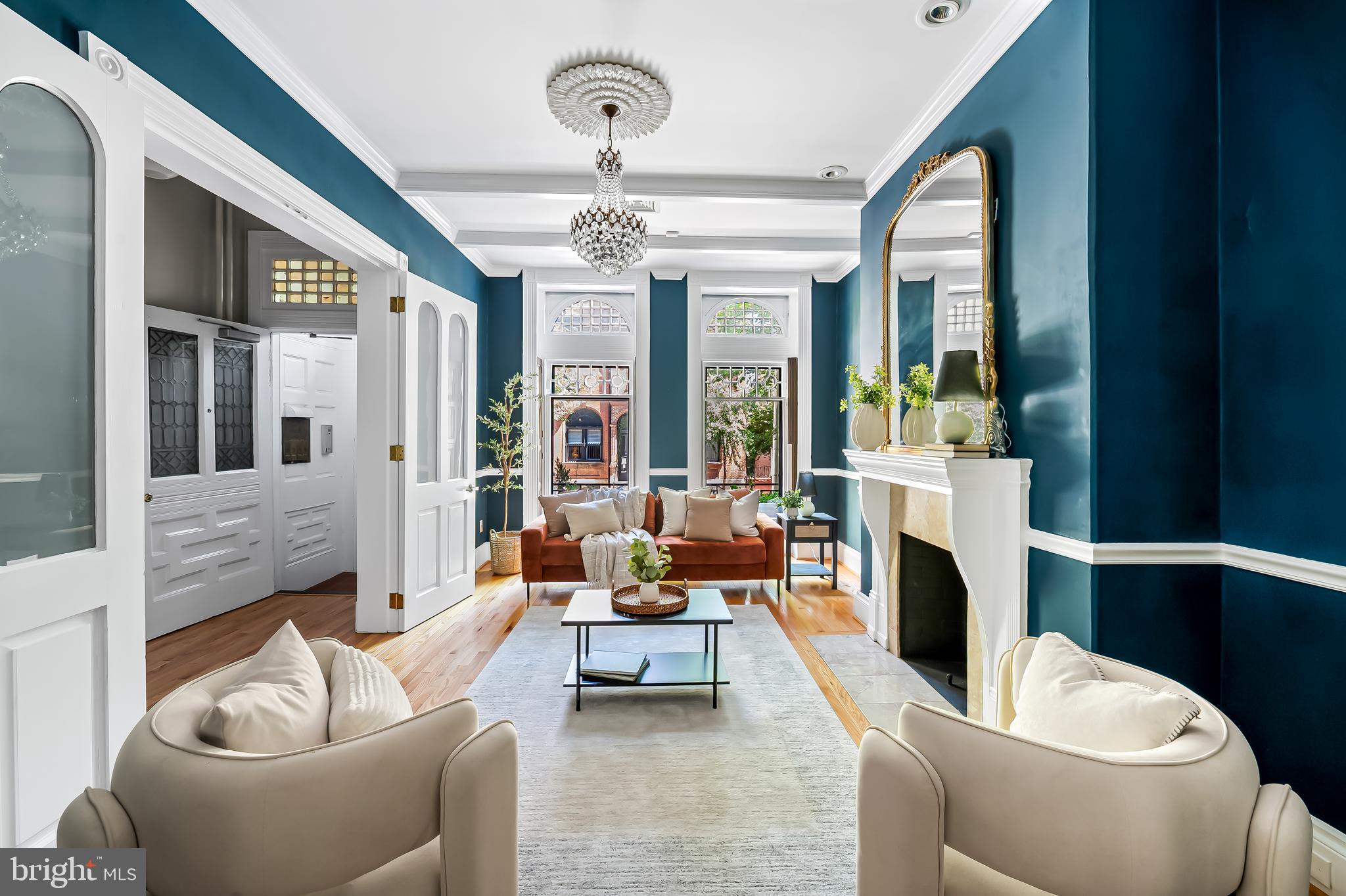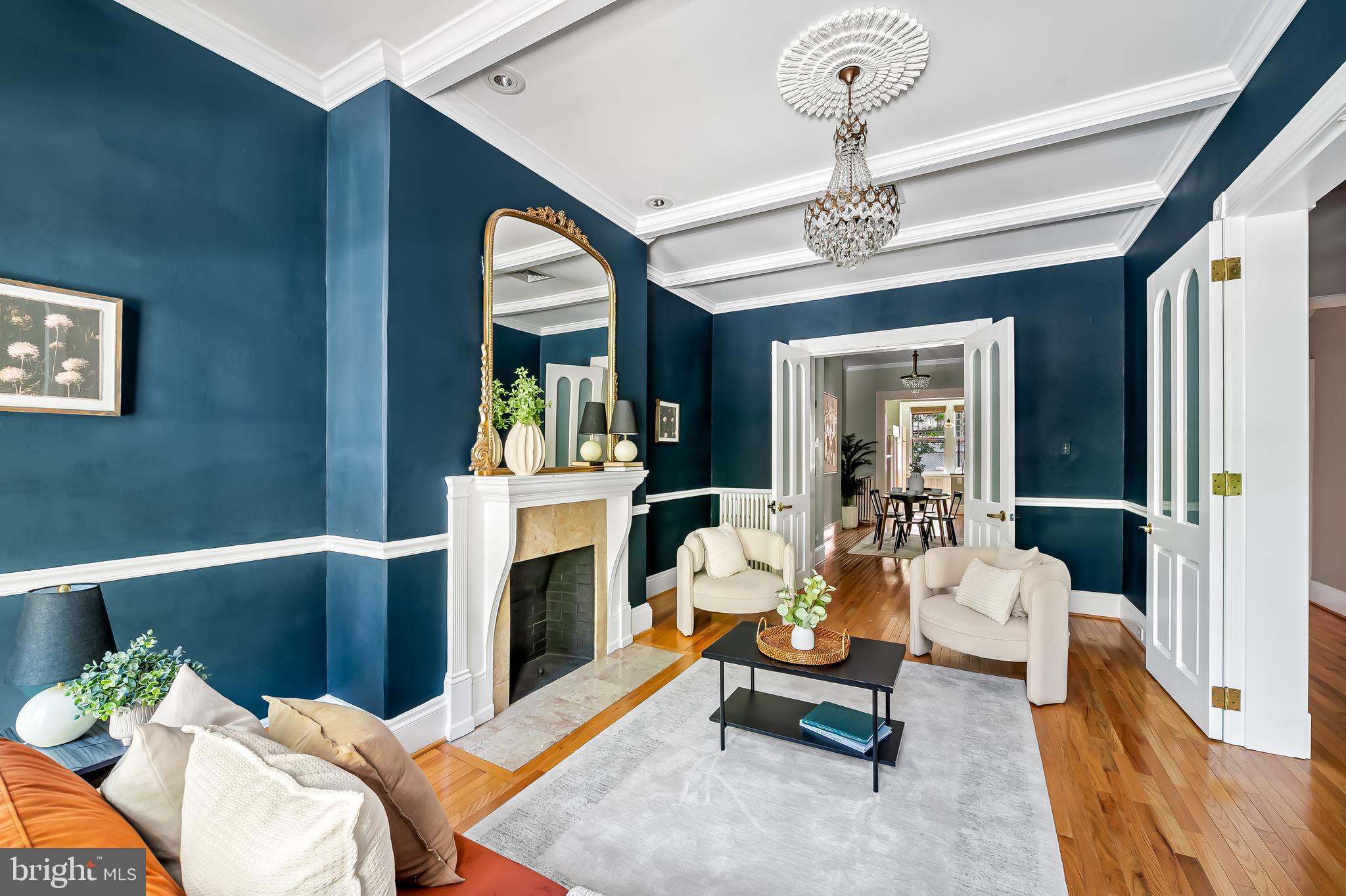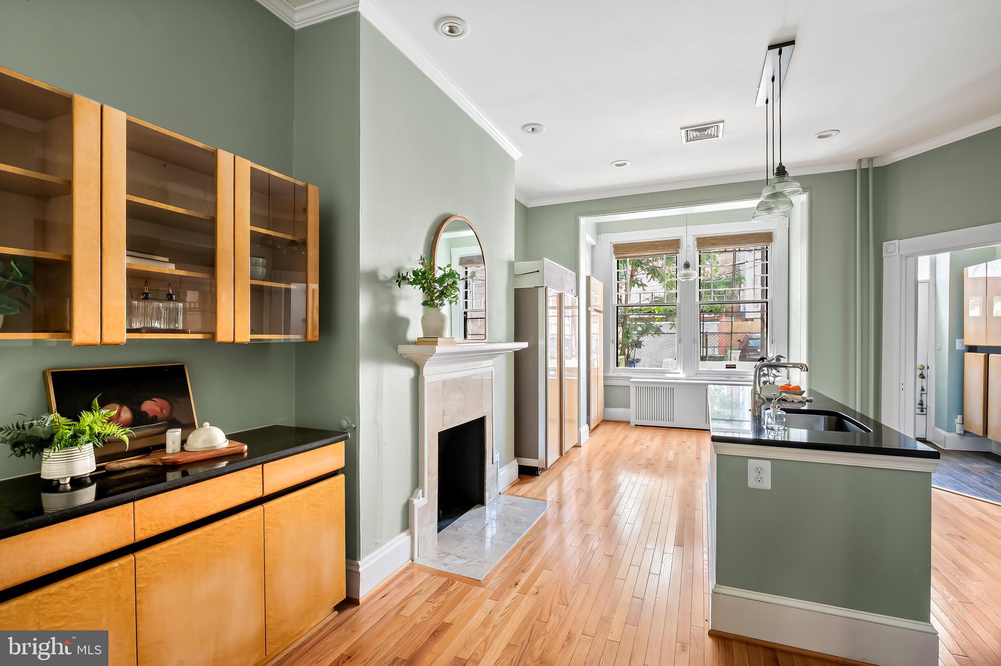 At 1040 N Calvert, you experience that legacy the moment you step inside. Soaring ceilings, intricate woodwork, and tall windows recall the grandeur of a bygone era, while thoughtful updates provide the comfort and flexibility of modern living. The double living room is as suited to hosting salons and gatherings as it is to curling up with a book, reflecting the tradition of entertaining and intellectual exchange that Mount Vernon is known for.