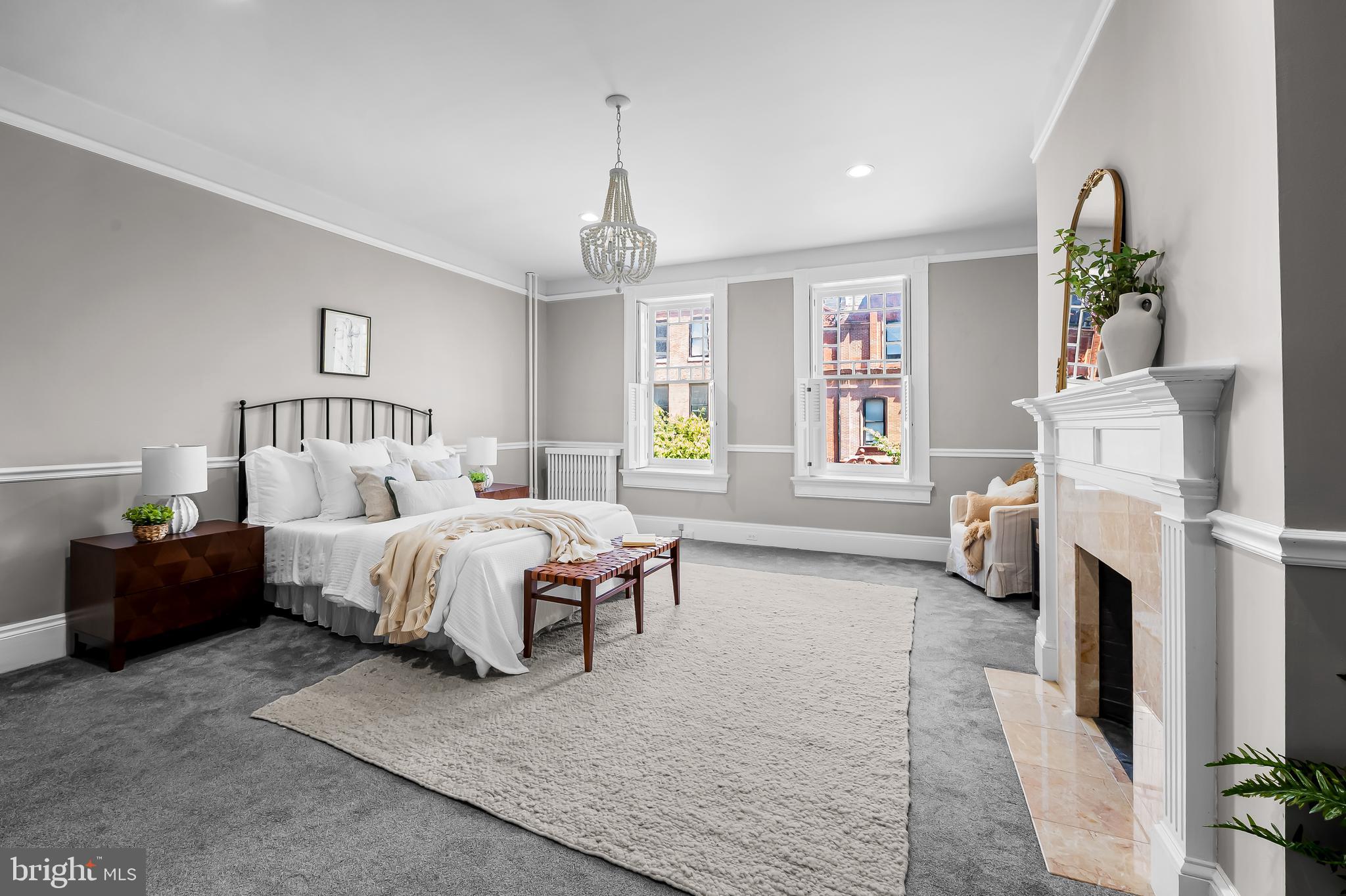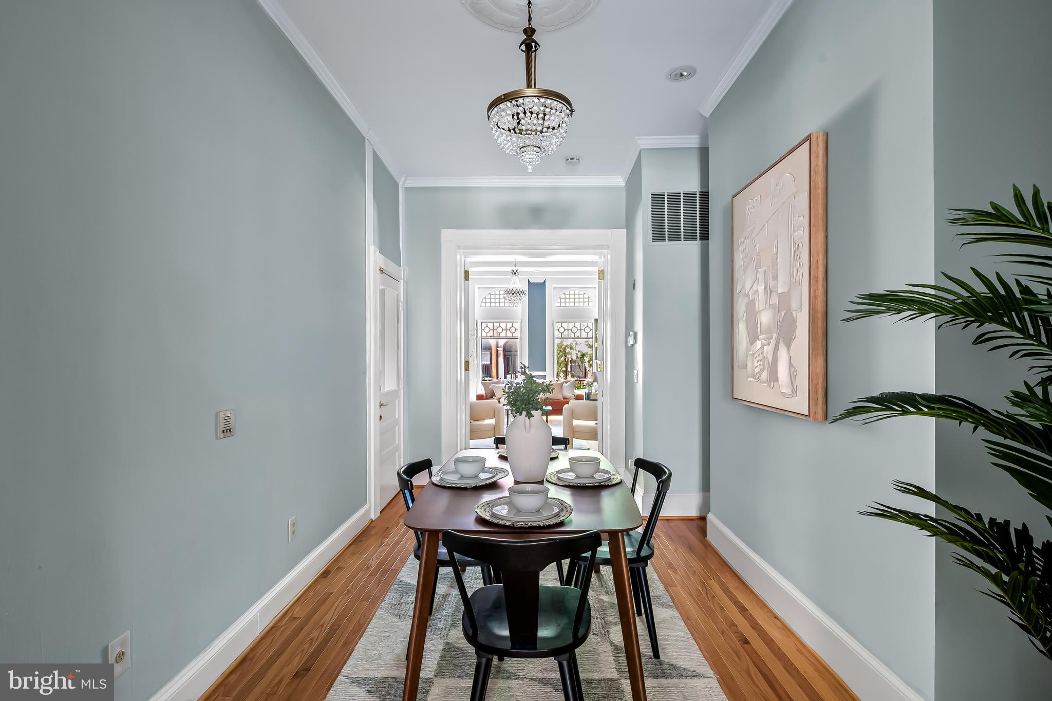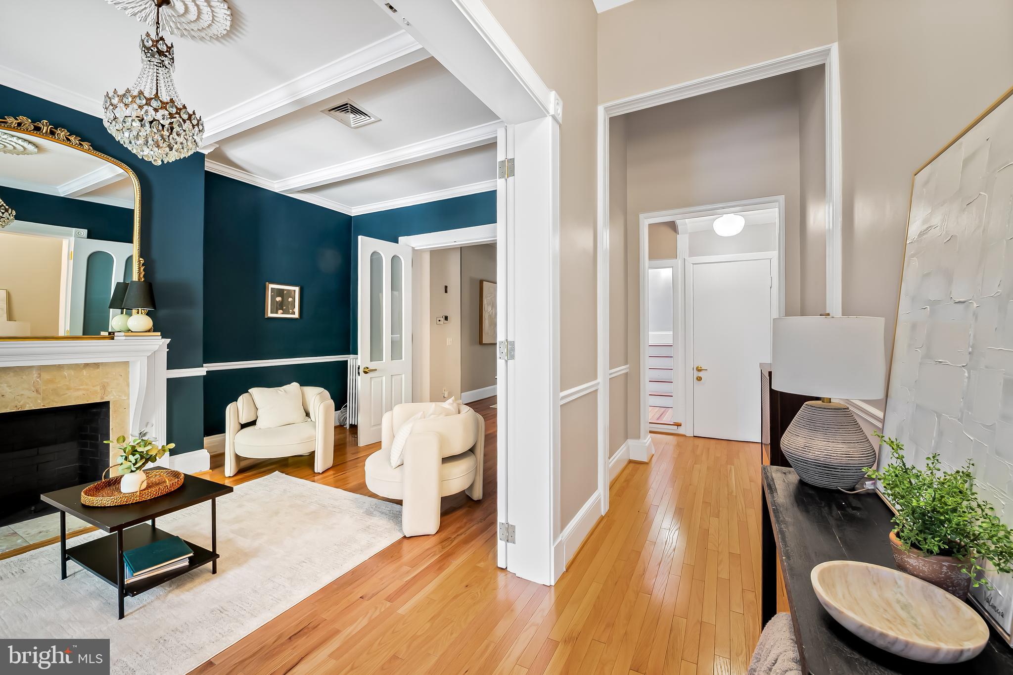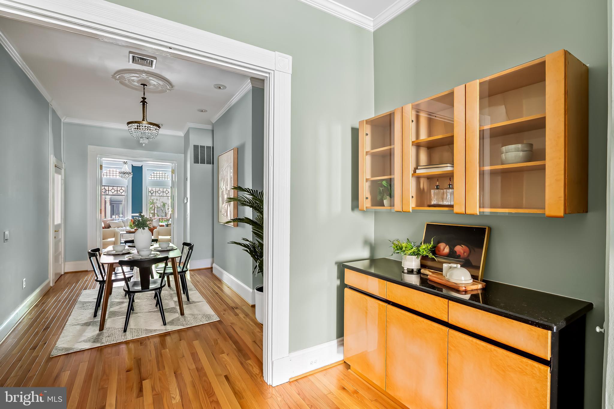 At 1040 N Calvert, you experience that legacy the moment you step inside. Soaring ceilings, intricate woodwork, and tall windows recall the grandeur of a bygone era, while thoughtful updates provide the comfort and flexibility of modern living. The double living room is as suited to hosting salons and gatherings as it is to curling up with a book, reflecting the tradition of entertaining and intellectual exchange that Mount Vernon is known for.