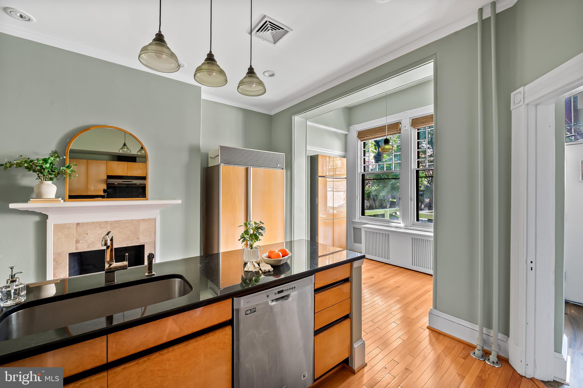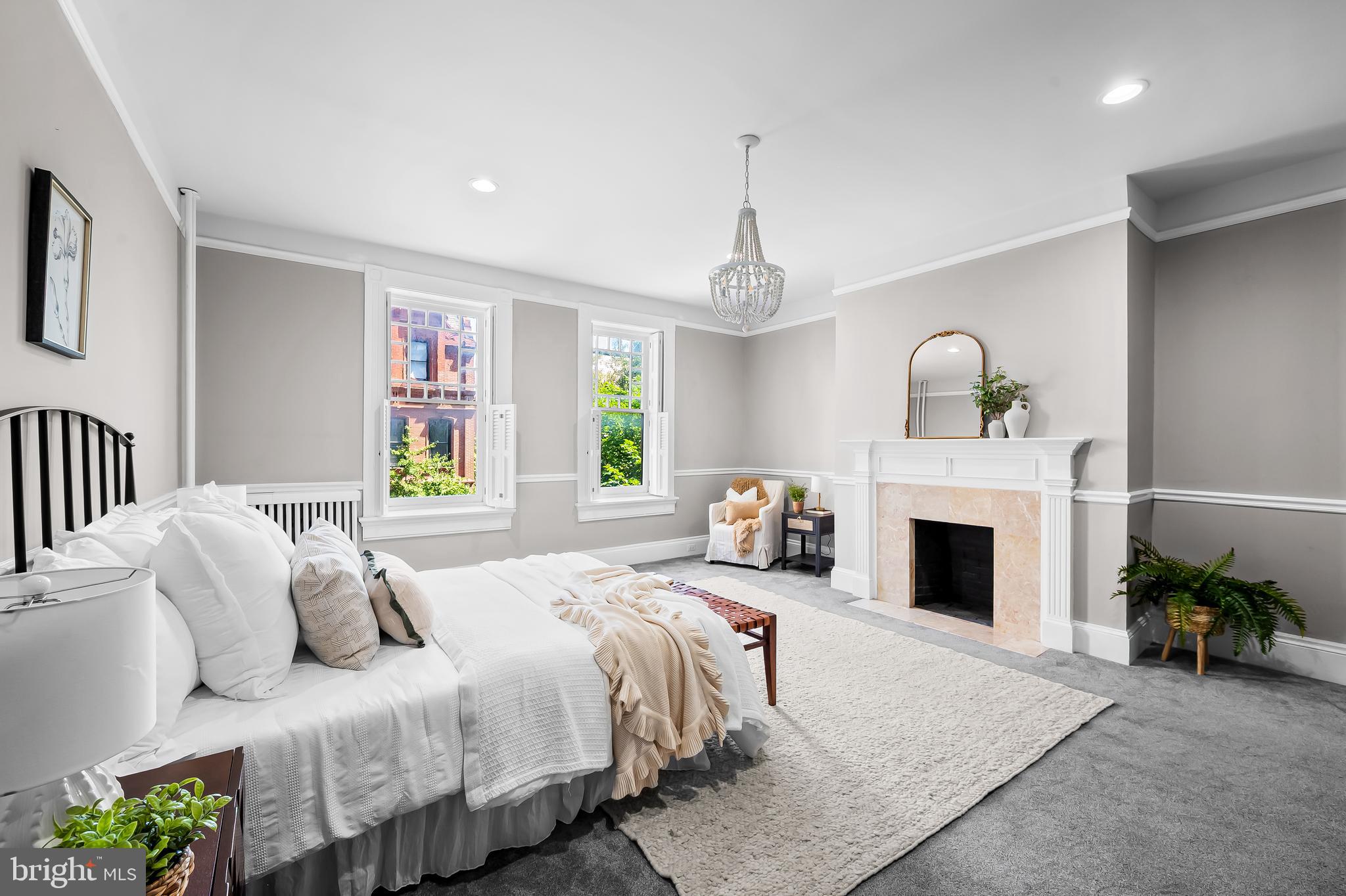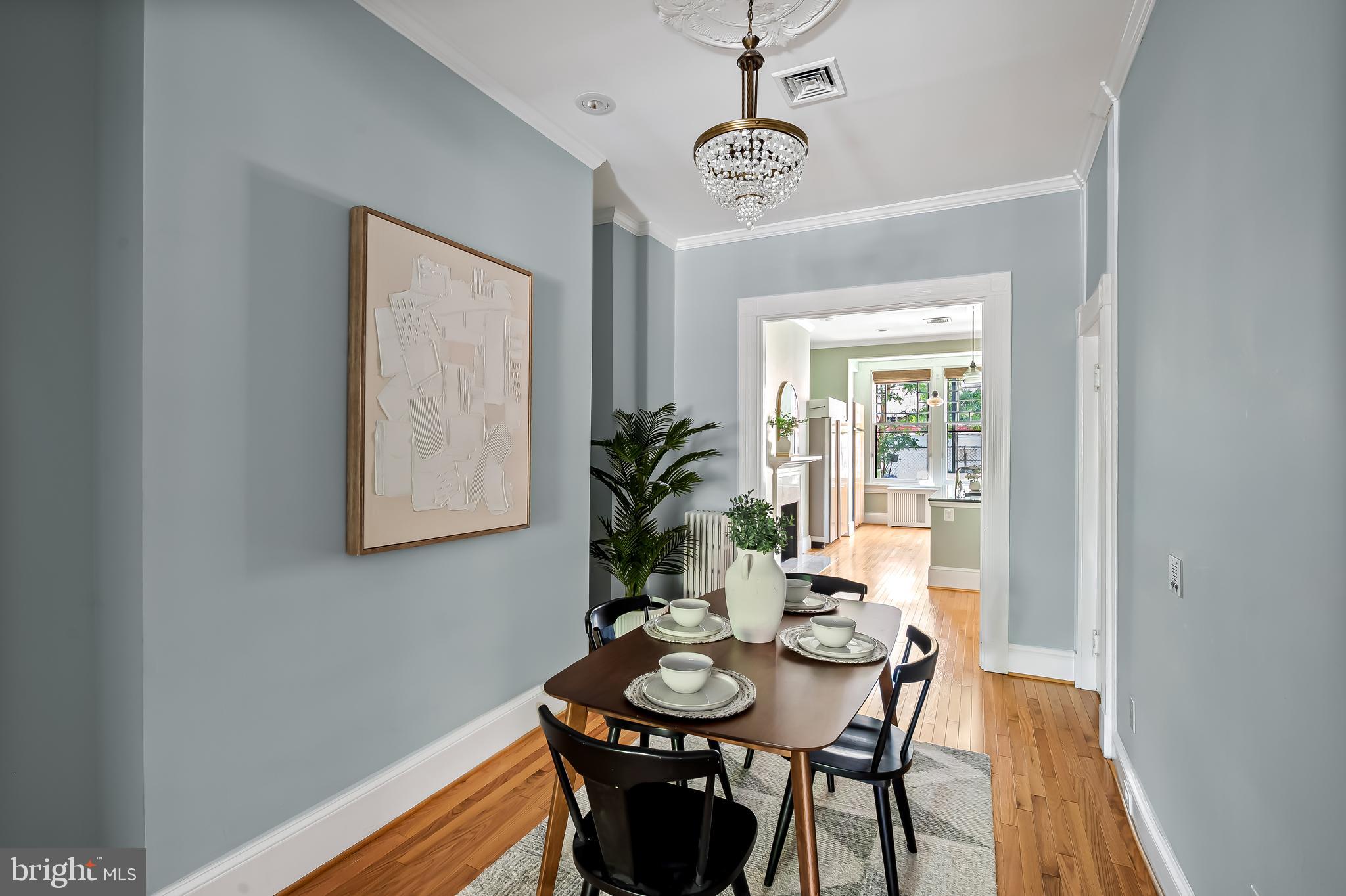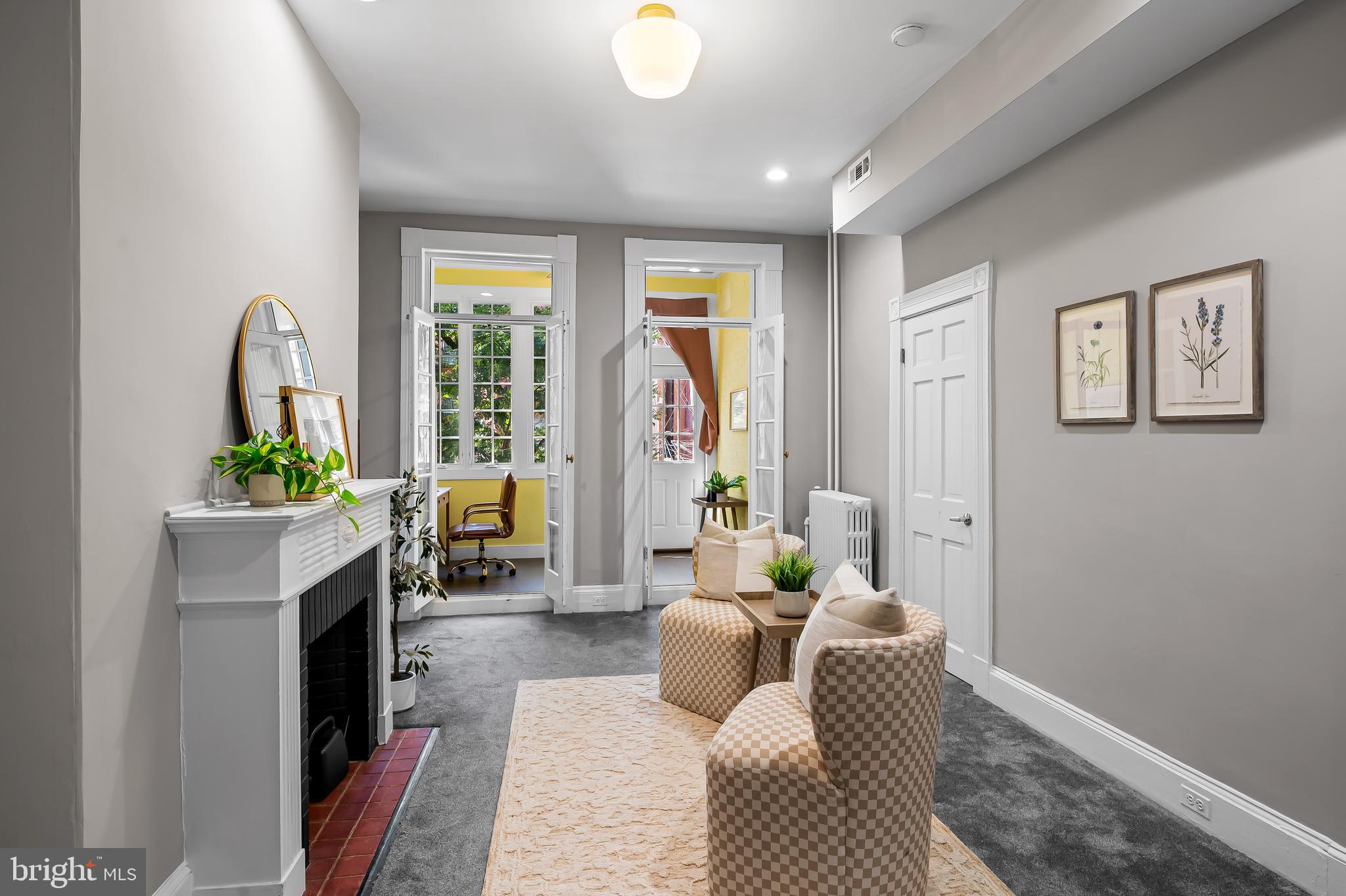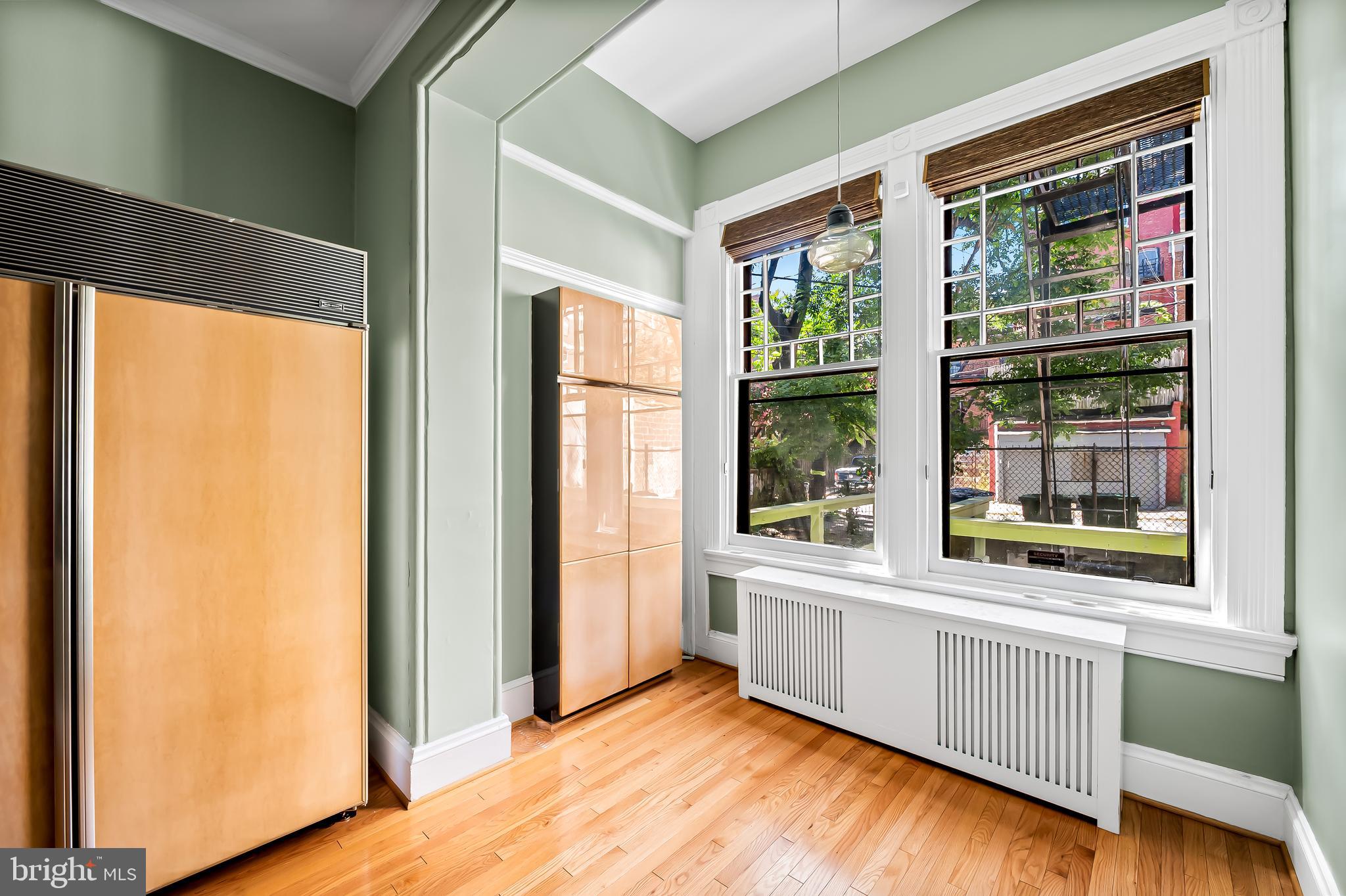 At 1040 N Calvert, you experience that legacy the moment you step inside. Soaring ceilings, intricate woodwork, and tall windows recall the grandeur of a bygone era, while thoughtful updates provide the comfort and flexibility of modern living. The double living room is as suited to hosting salons and gatherings as it is to curling up with a book, reflecting the tradition of entertaining and intellectual exchange that Mount Vernon is known for.