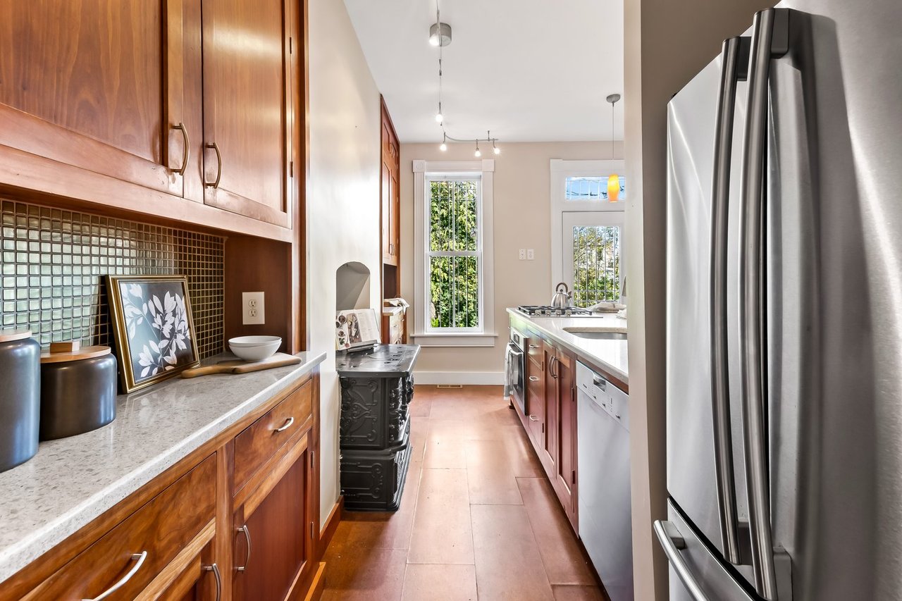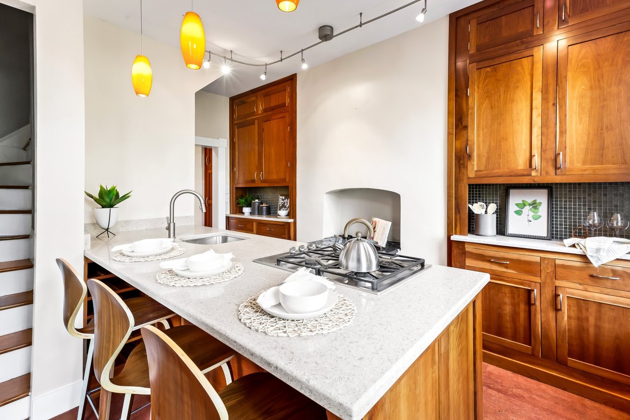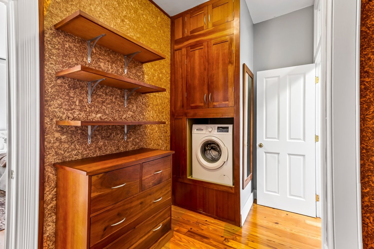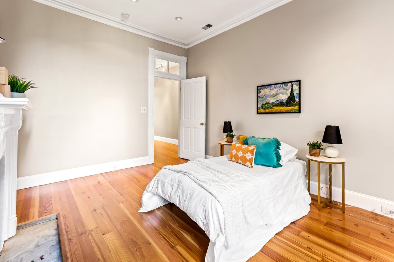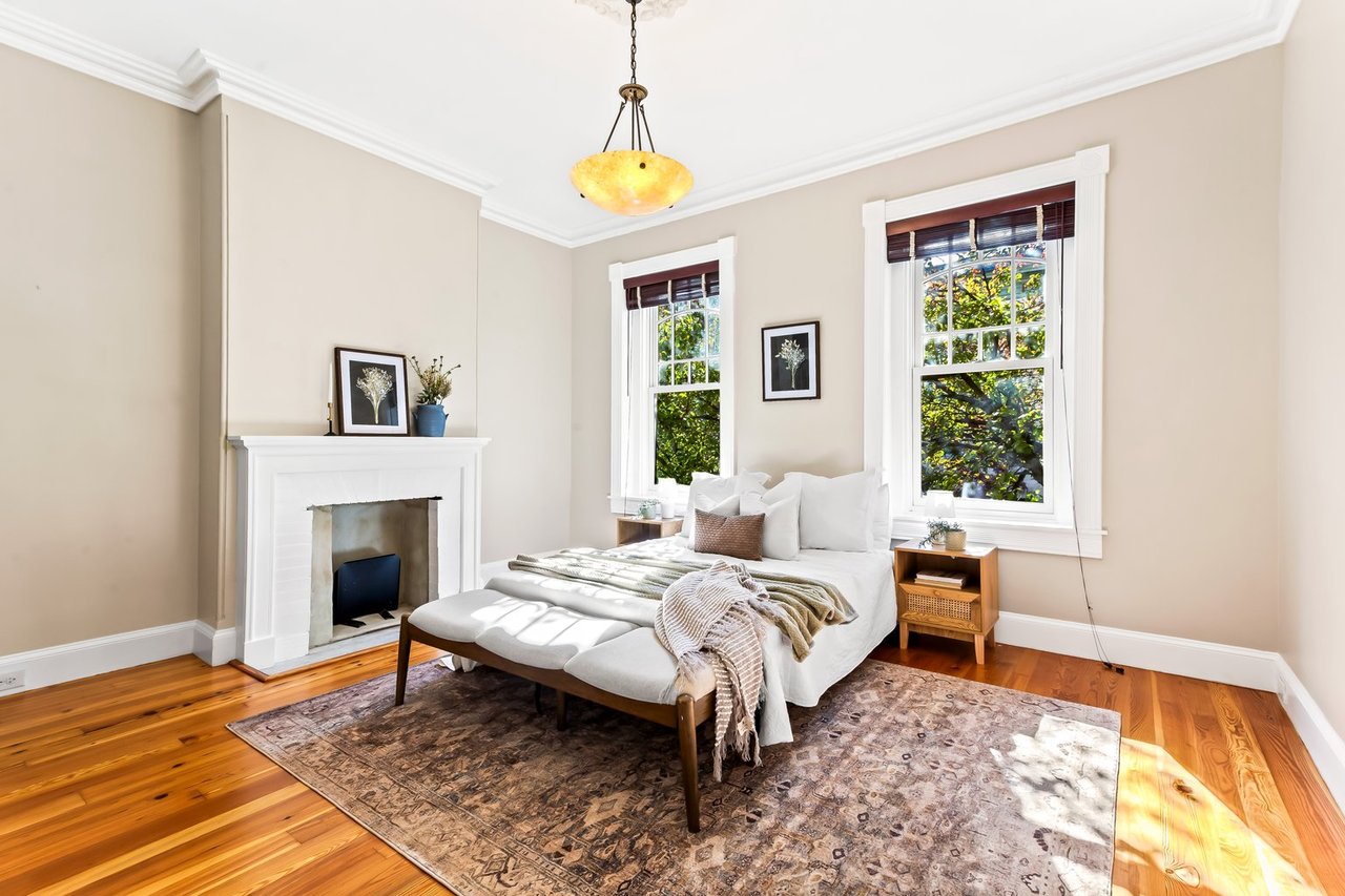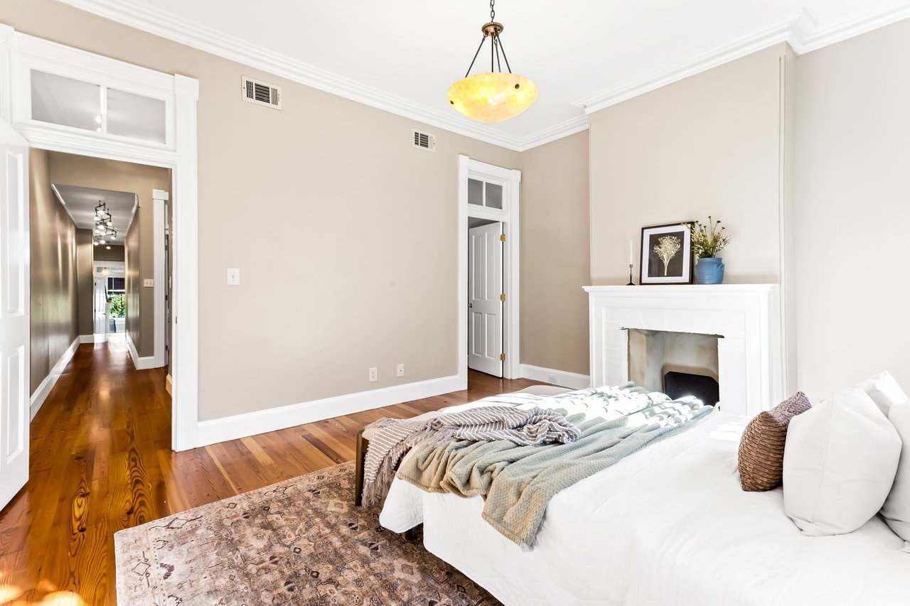Circa 1881, this beautiful row of dormered Eastlake style townhouses were built on this dead end block of John St in Bolton Hill. So many original details remain including six original mantels, one wood burning fireplace, stained glass, ornate staircase, rear servants staircase and the original coal stove in the kitchen. 1213 John Street is one of the few fully restored homes in Bolton Hill with new historically accurate wood windows and heart pine wood floors, all new wiring, plumbing, two zone heat and cool, roof, kitchen and baths and more!. The main level has a living room, dining room, powder room and beautiful modern eat-in-kitchen with bar seating. The second floor has three bedrooms and one full bath. The third floor was used as a primary suite with a walk-in-closet with Bosch washer/dryer combo, cedar closet, primary spa bath with walk-in shower and soaking tub along with a fifth bedroom which would be an excellent home office, nursery or home gym. The basement is unfinished and has a brand new concrete floor, new electric hot water heater, and additional washer/dryer. Perfect basement for storage only. The home has a wonderful, low maintenance bluestone patio for entertaining which is easily accessible directly from the kitchen. Located in the beautiful tree-lined neighborhood in Bolton Hill with easy street permit parking. This home is conveniently close to Penn Station, making it easy to access the MARC Train to Washington D.C., Amtrak to Philadelphia or NYC, and the Hopkins Shuttle to the Homewood or East Baltimore Campus. The property also offers easy access to the Light Rail for travel to BWI Airport, as well as major highways such as I-95, I-295, and I-83. For those on two, or four feet, or two wheels, the home is located in a very walkable neighborhood with many bike lanes to connect you to all parts of the city. Bolton Hill is known for its beautiful tree-lined streets, welcoming community, and proximity to local restaurants, cafes, and local shopping opportunities. Your new neighbors are awaiting your arrival to this special block. This home is located in a CHAP Historic District and is subject to the Midtown Special Benefits District Surcharge Tax