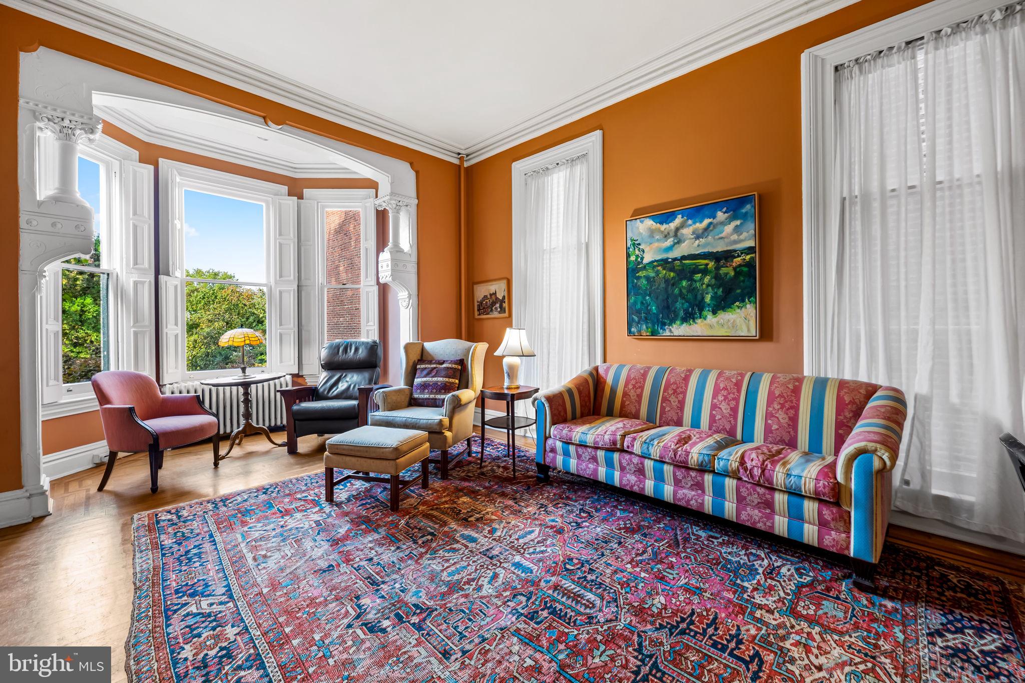 Discover a rare Victorian masterpiece on one of Bolton Hill's most admired blocks. Circa 1880s, this grand four-story home blends timeless architecture with modern comfort -- complete with an elevator, two-car garage, and lush private garden.