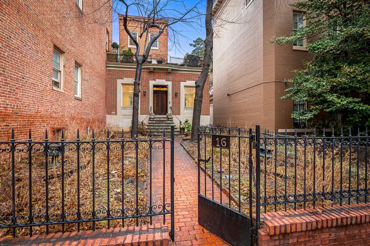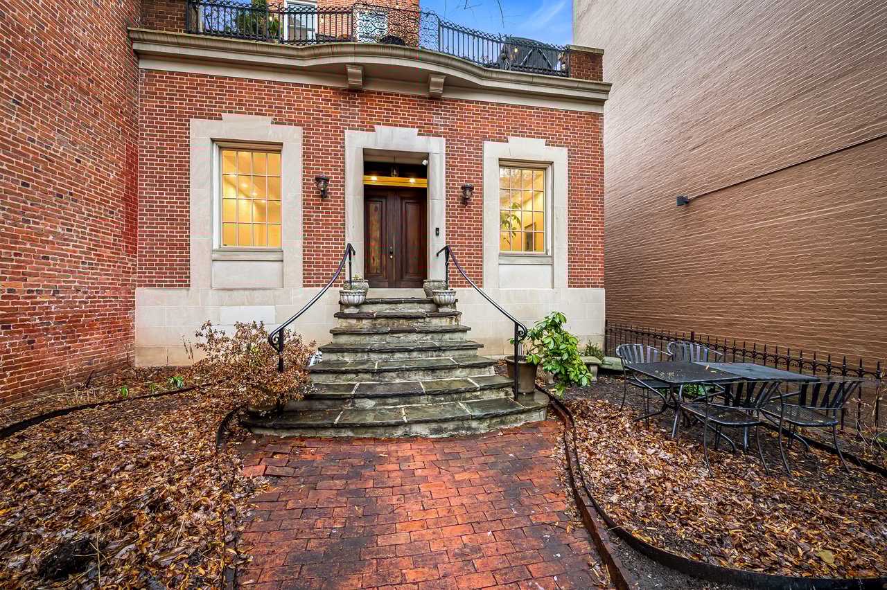 One of the most enchanting features of the property is its rare front garden. Uncommon for a townhouse of this scale, the garden has been thoughtfully curated with perennial plantings by an English gardener. While not yet in bloom, the garden becomes lush and vibrant as the seasons progress, creating a graceful and welcoming approach to the home. Mature plantings and a brick path are enclosed in a shaded inner courtyard garden along the side of the property, creating a secluded retreat that enhances both privacy and tranquility.