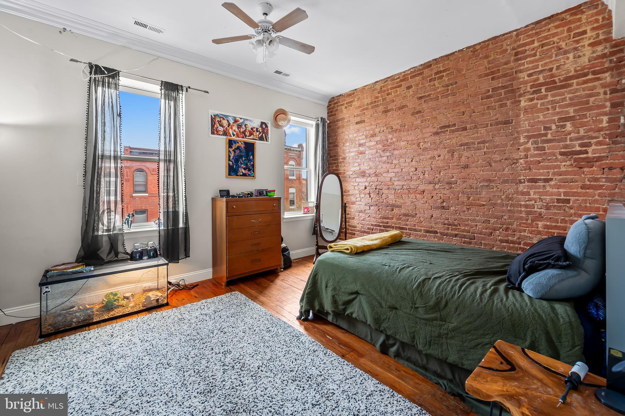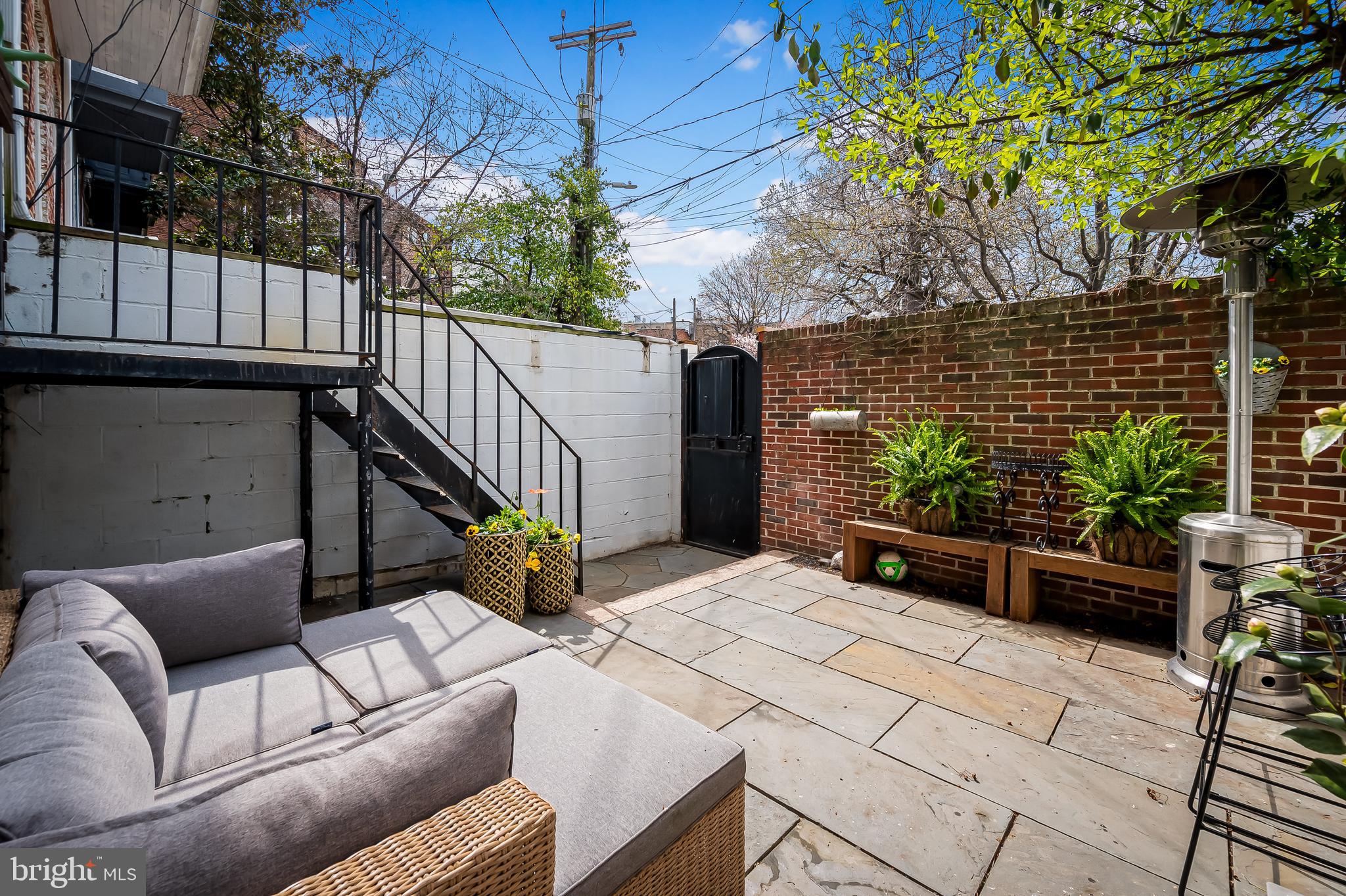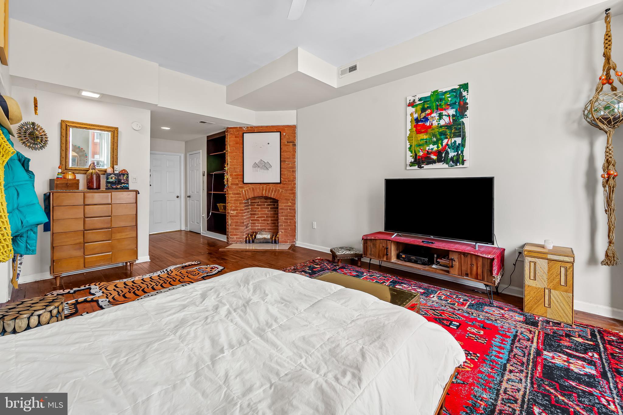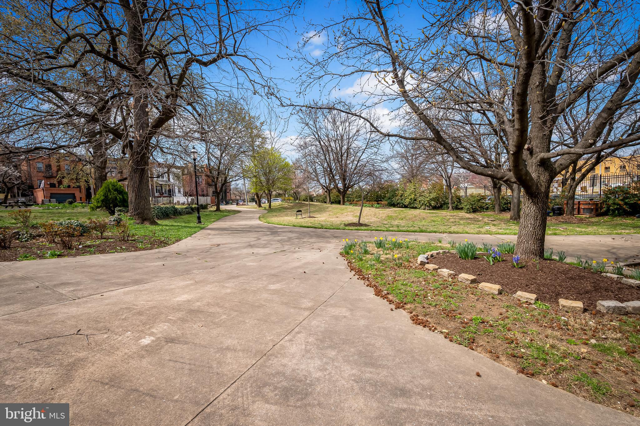 The second floor has a large primary suite with exposed brick mantel, built-ins and a spa bath with dual sinks, soaking tub and walk-in shower. At the rear of this level is another bedroom overlooking the coveted Maple Leaf Park behind the house. Bolton Hill is well known for its greenery and pocket parks!