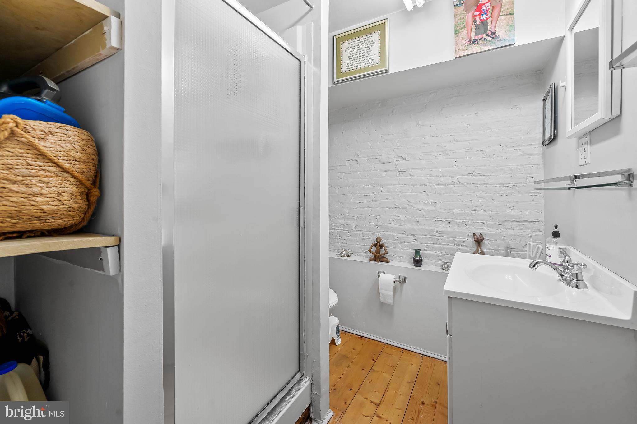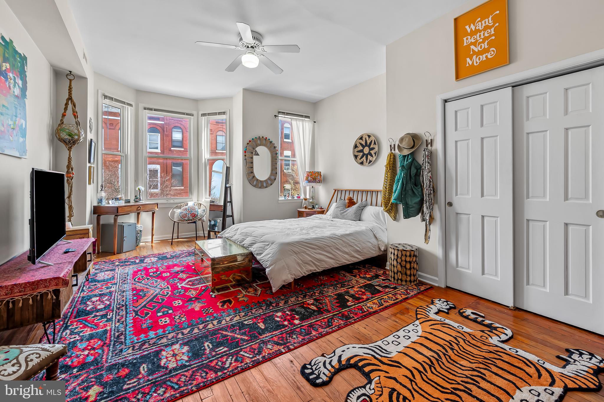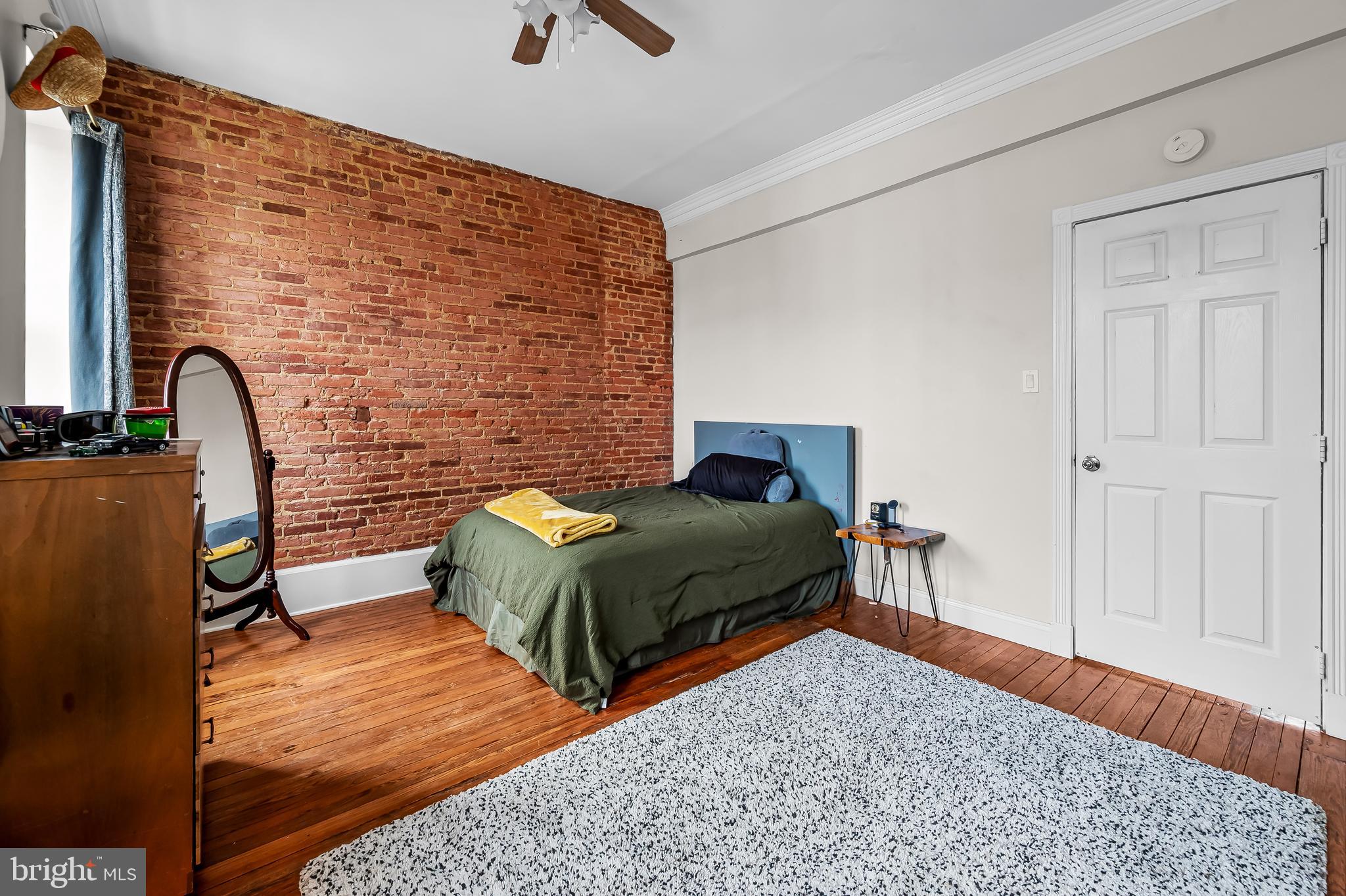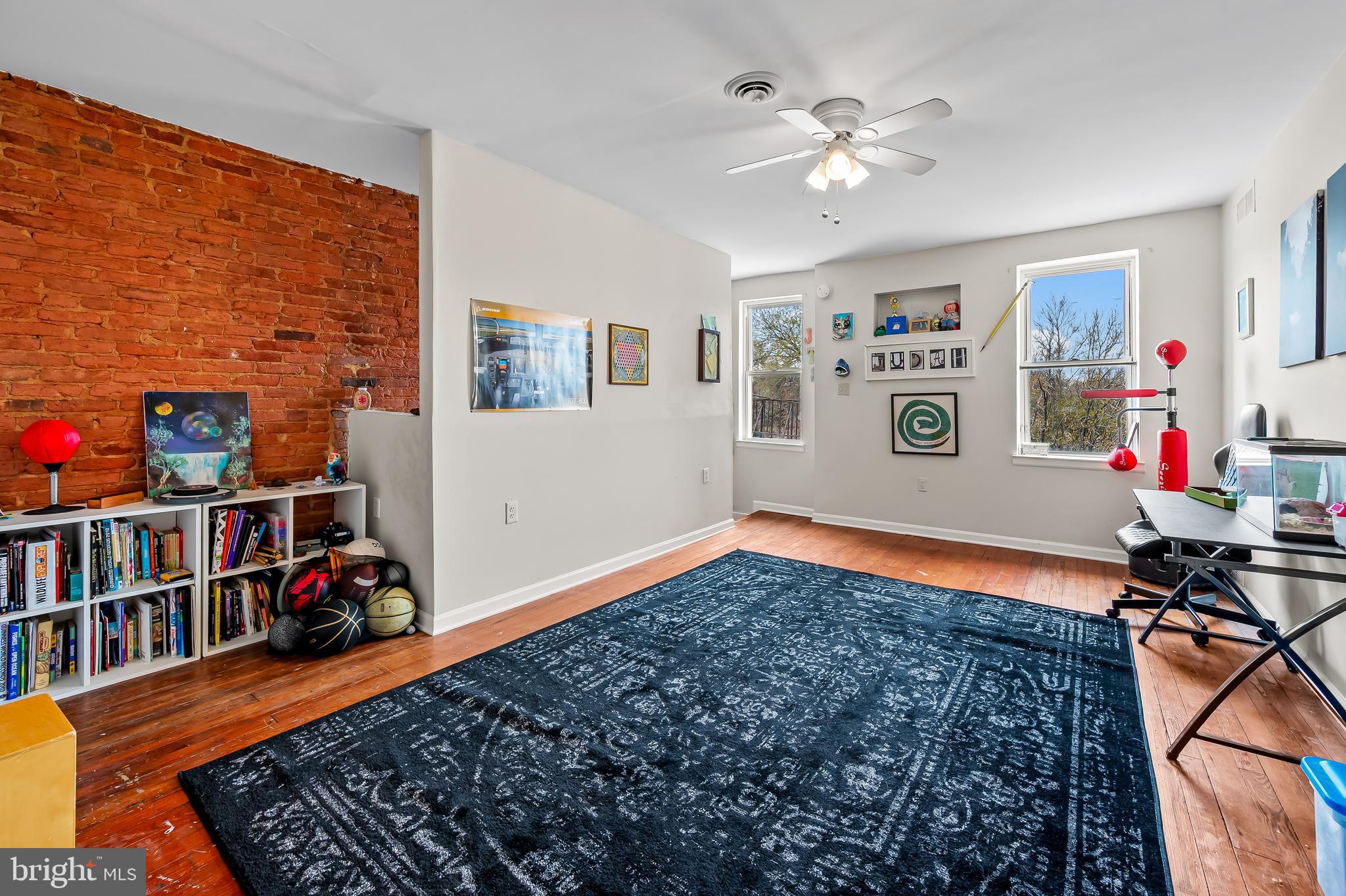 The second floor has a large primary suite with exposed brick mantel, built-ins and a spa bath with dual sinks, soaking tub and walk-in shower. At the rear of this level is another bedroom overlooking the coveted Maple Leaf Park behind the house. Bolton Hill is well known for its greenery and pocket parks!