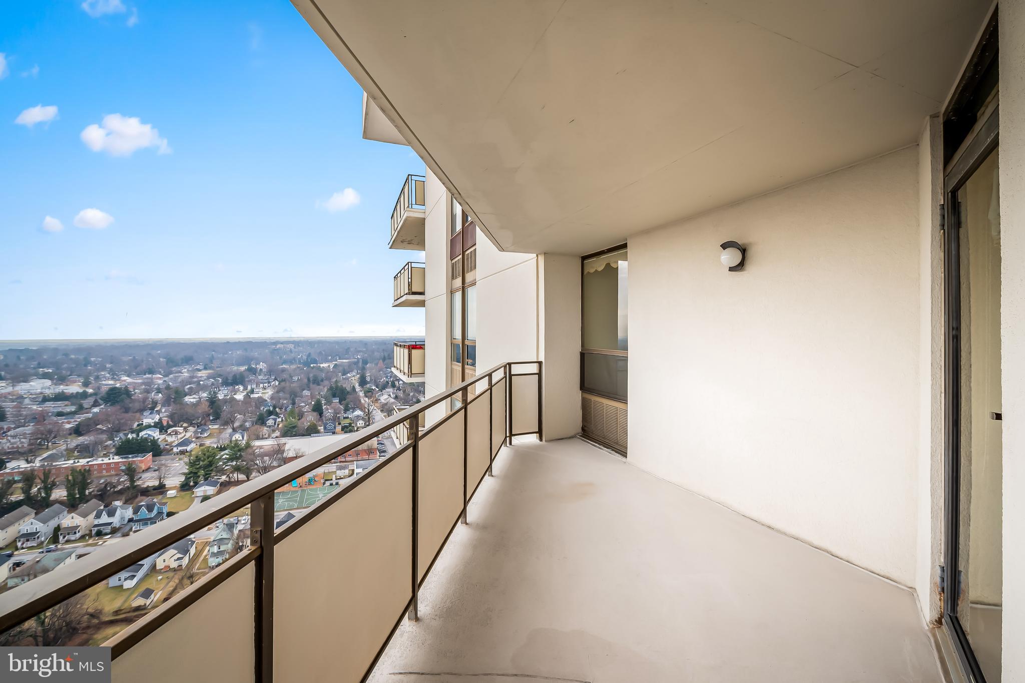 Welcome to The Ridgely Condominiums, an exclusive, full service building in the heart of downtown Towson. This unit has fantastic views from the 26th floor balcony as far as the Chesapeake bay, Patapsco River, Back River and Middle River. This 1121 SqFt unit has one bedroom, one bath, large kitchen and living room/dining room. Tons of closet space and storage. The unit has just been freshly painted with new carpet. All utilities are included in the monthly fee. Deeded garage parking on level P2 Space #100, pool, 24/7 front desk, security, and concierge and exercise room.