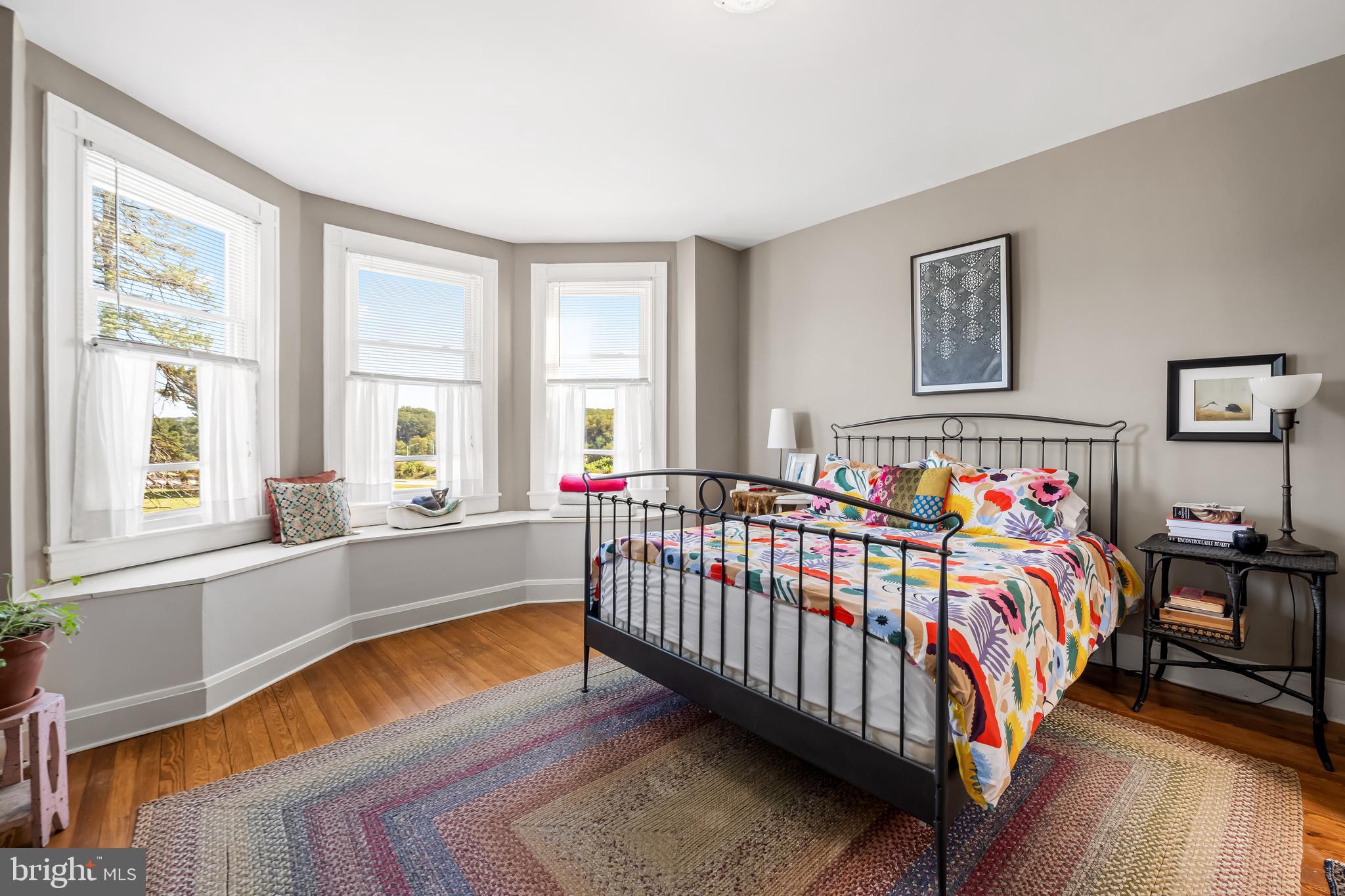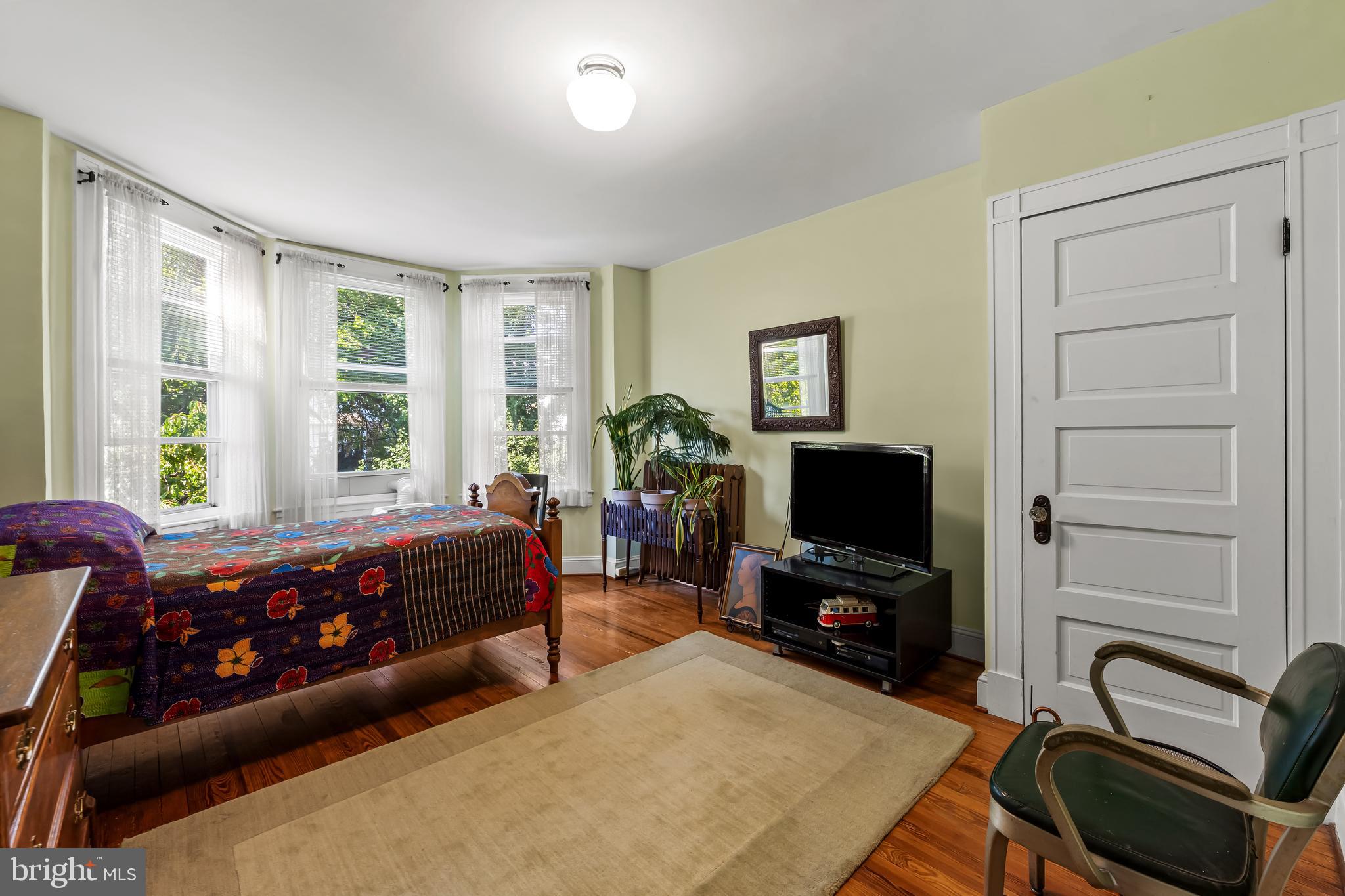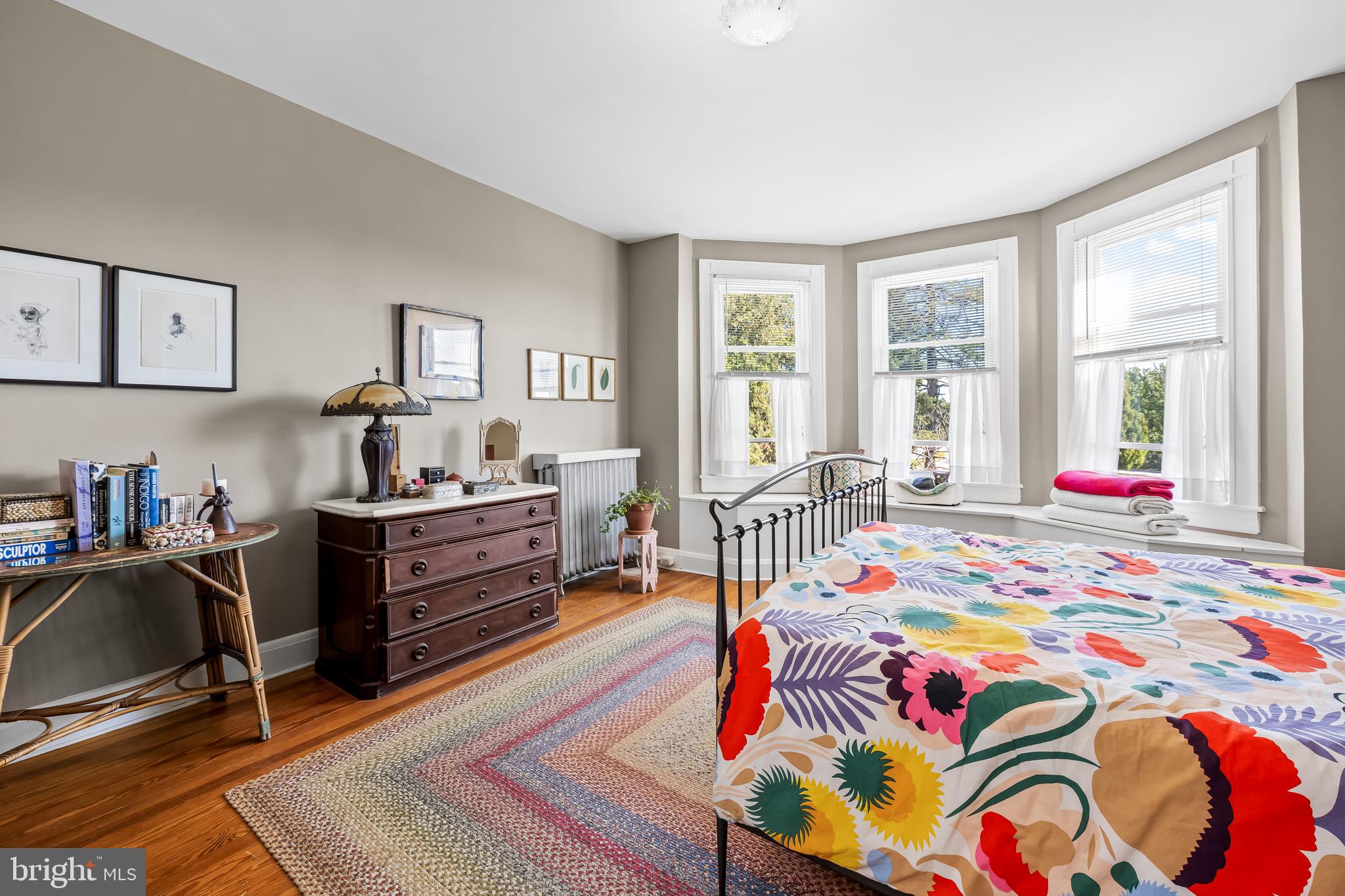 The second floor has three bedrooms with the primary overlooking the park, a walk-in closet, and a renovated bathroom. Bay windows in front and back bedrooms offer breezes and gorgeous light throughout the day.