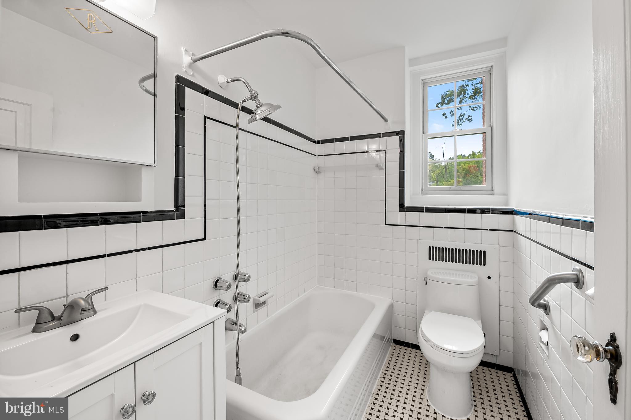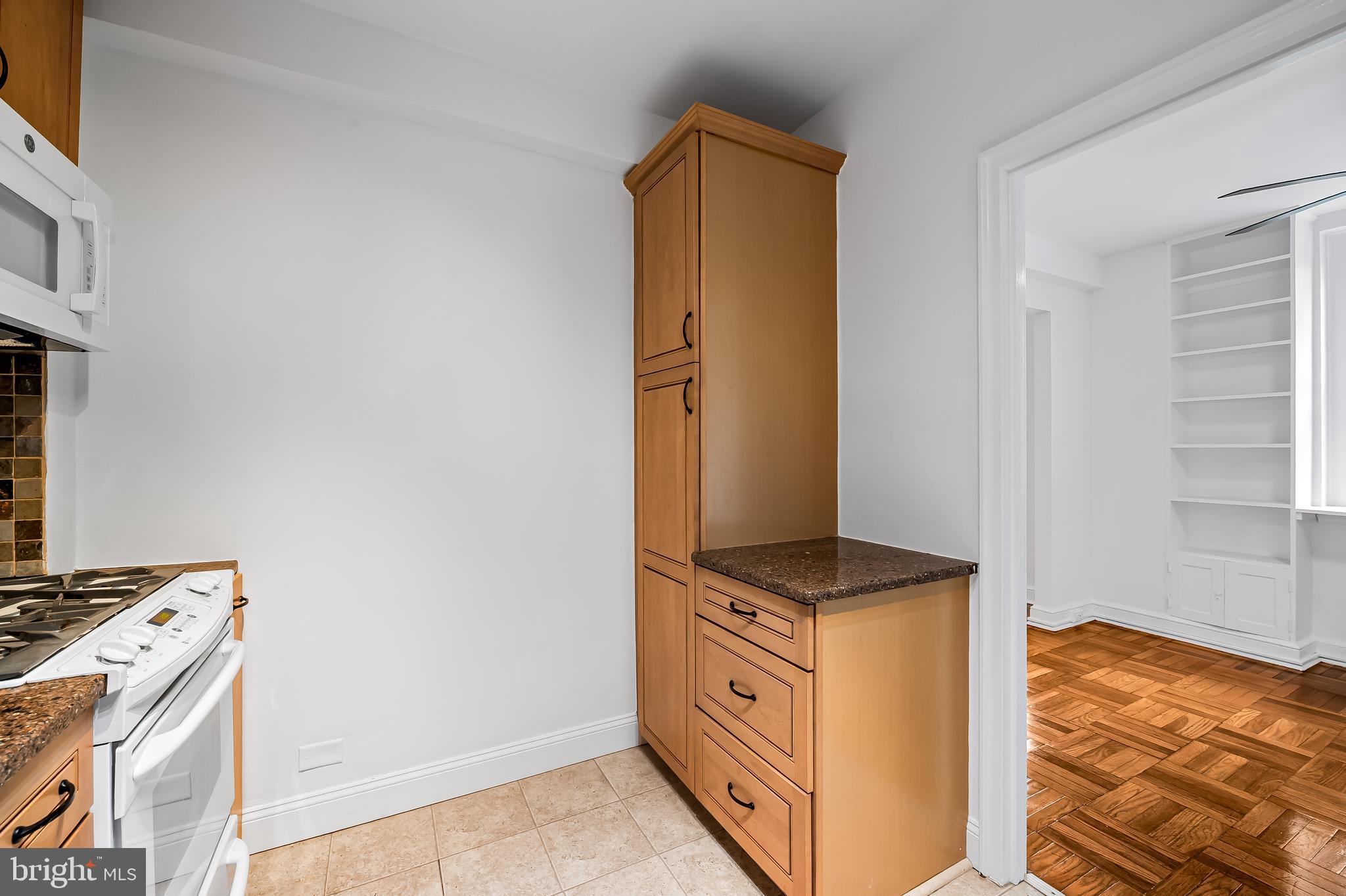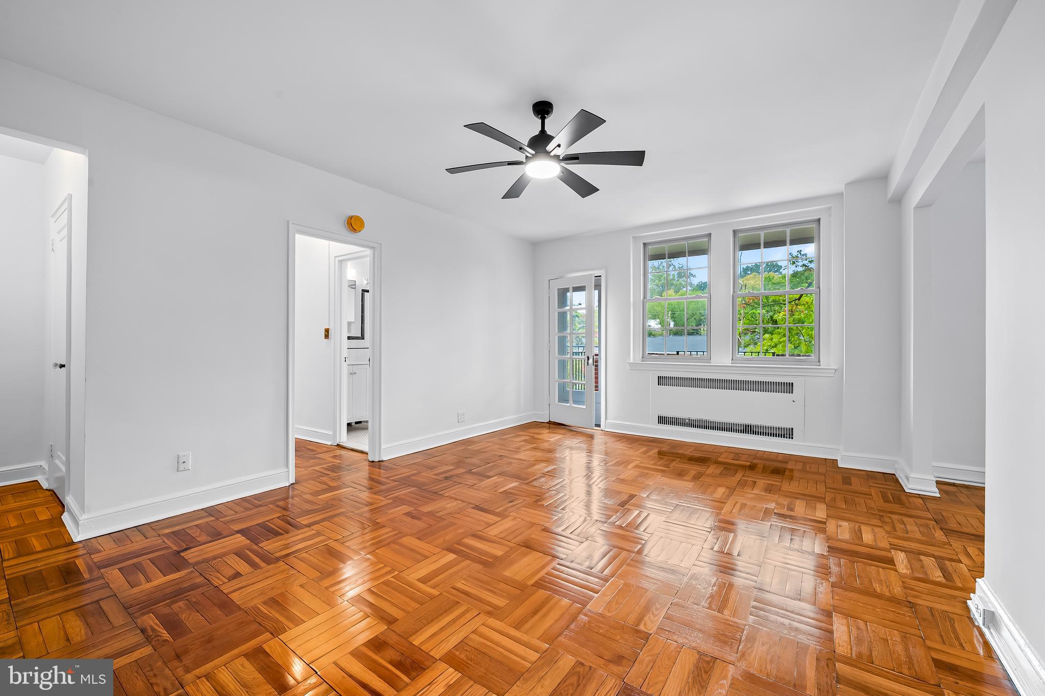 Located on the entrance level of the building, this unit requires no stairs or elevator--ideal for those who want easy access. Inside, you'll find a welcoming foyer with a large coat closet, a spacious living and dining room with built-ins, a modern kitchen, a generous bedroom with two double closets, and a full bath with the classic black-and-white tile Baltimore is known for. The parquet floors have just been refinished, and the entire unit freshly painted, making it move-in ready.
