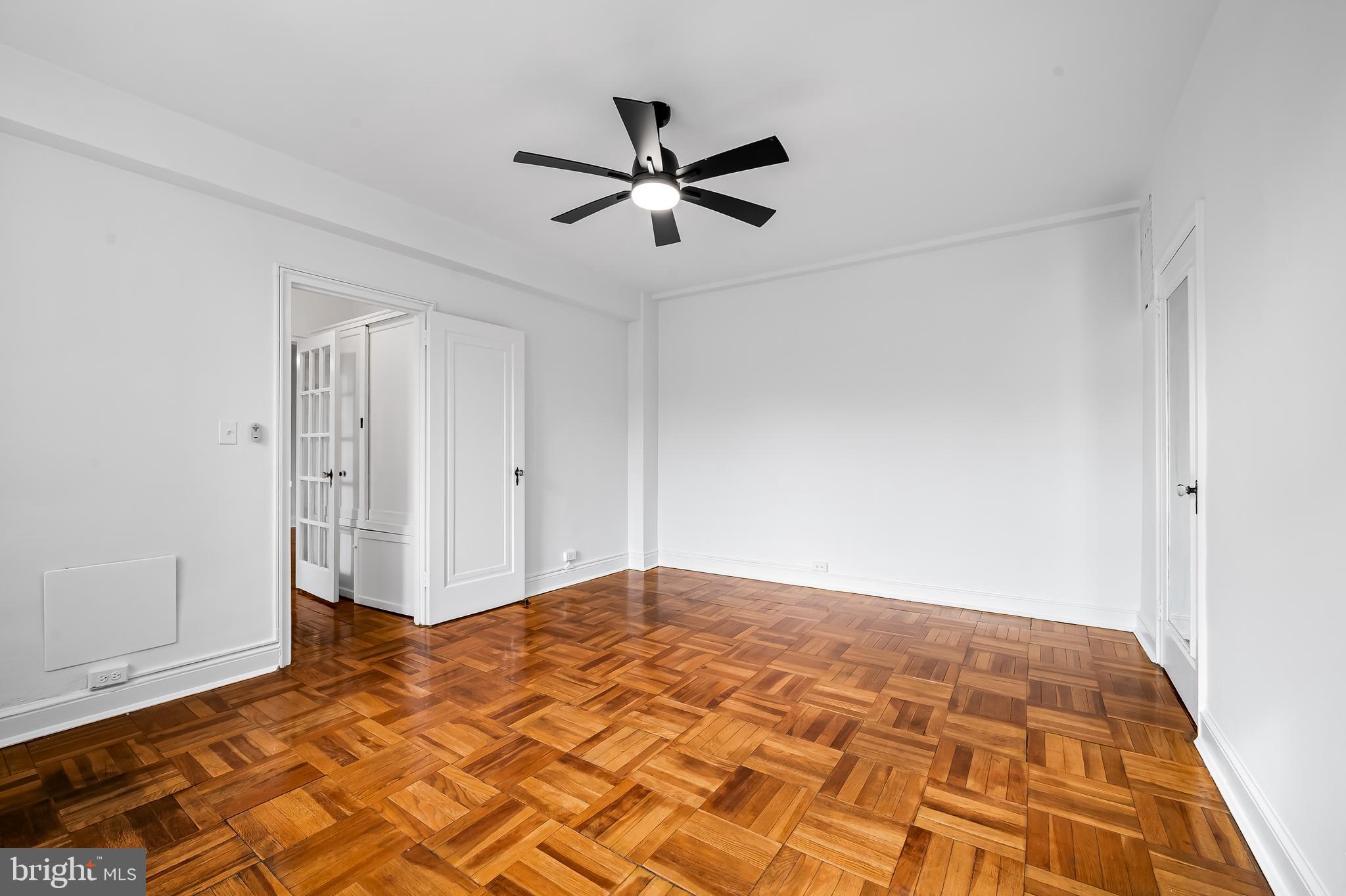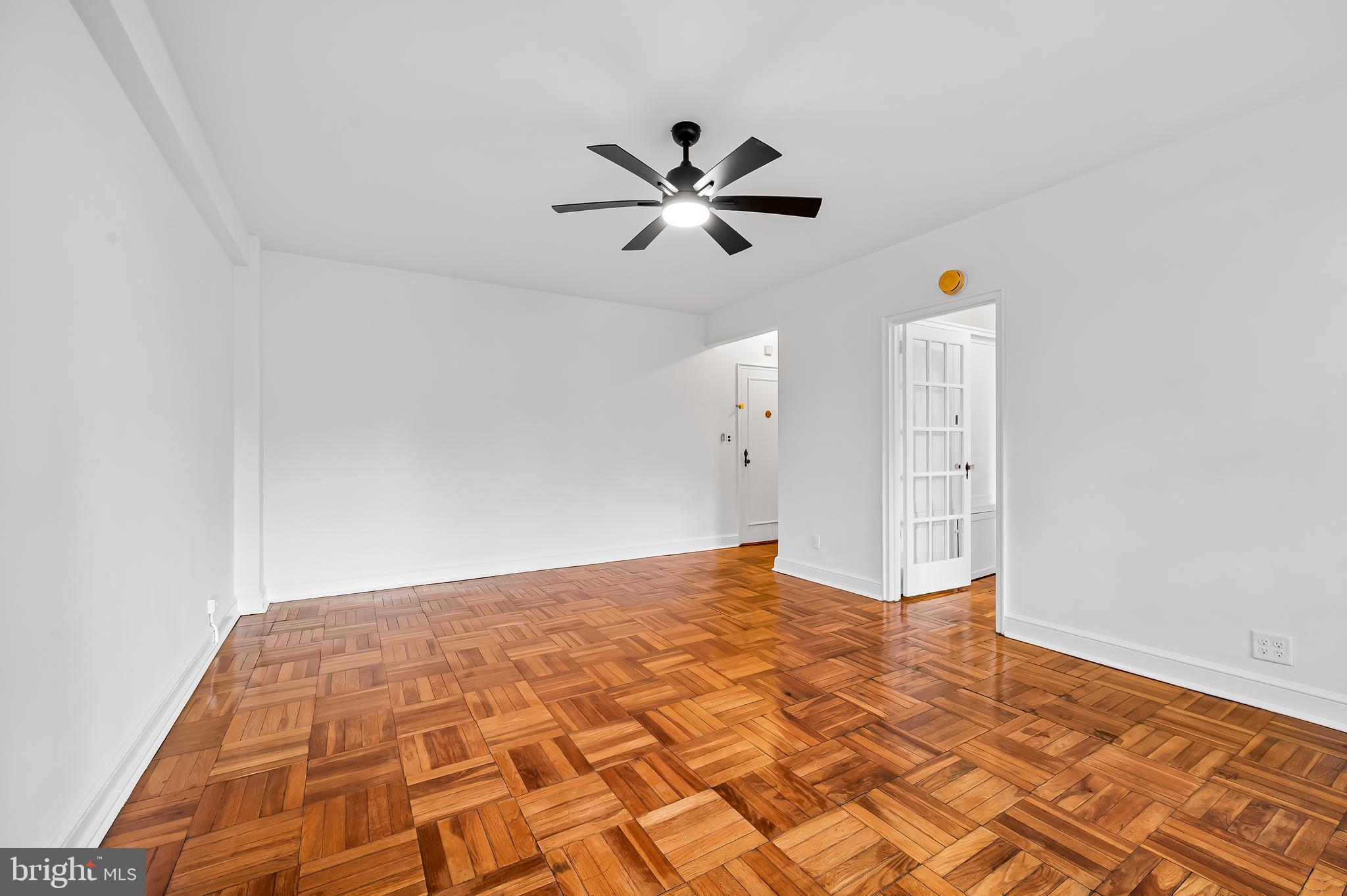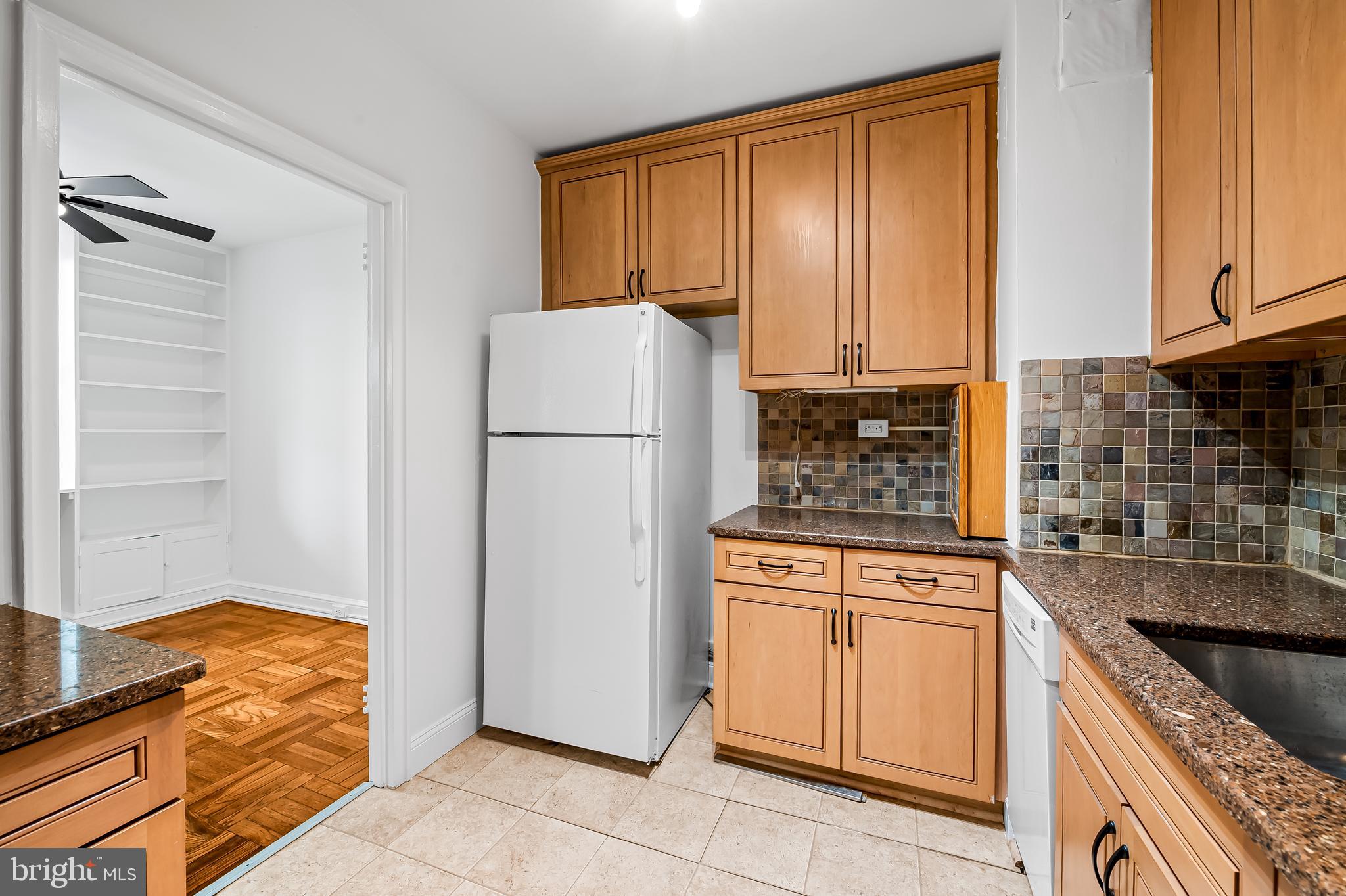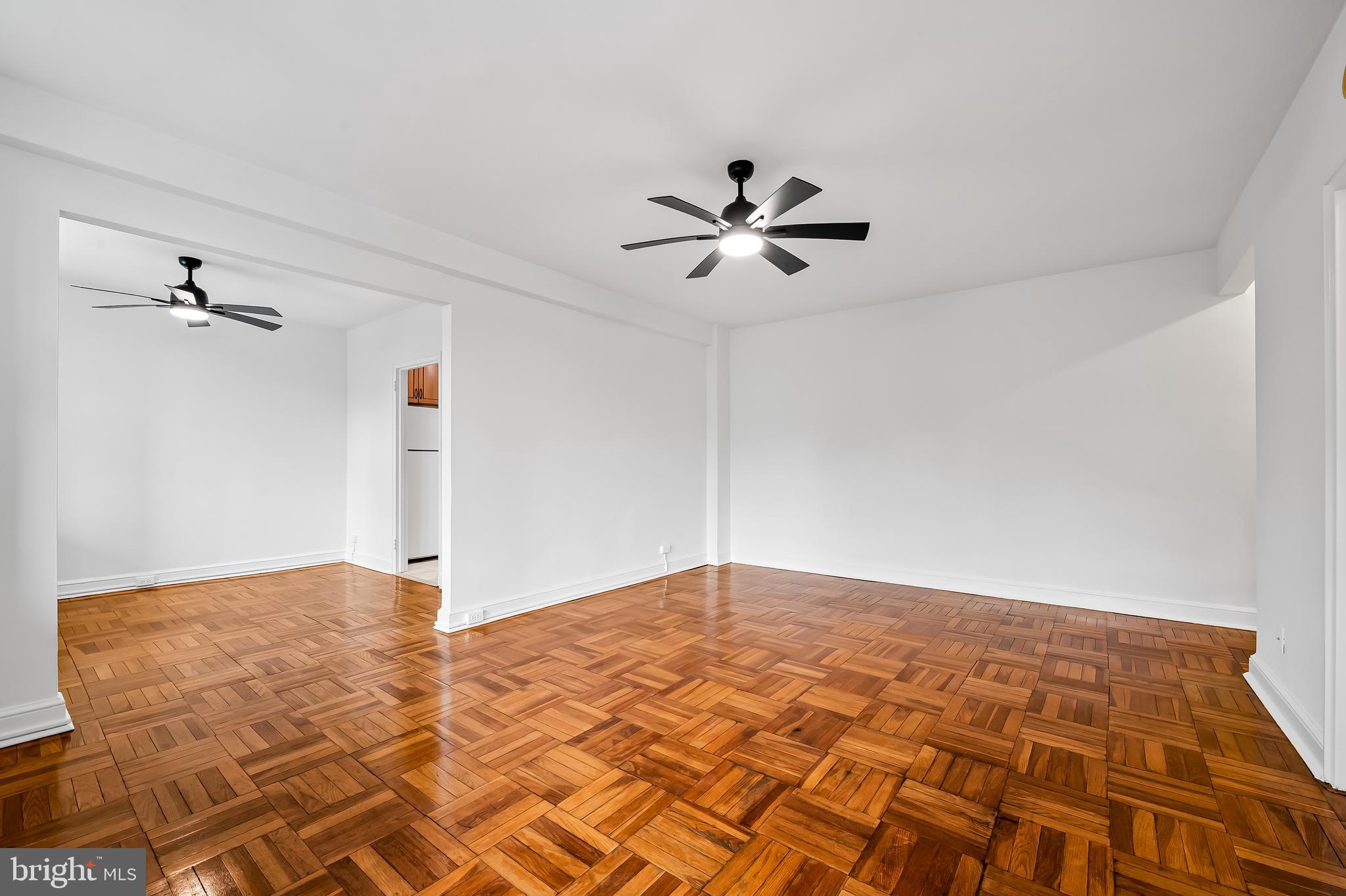 Located on the entrance level of the building, this unit requires no stairs or elevator--ideal for those who want easy access. Inside, you'll find a welcoming foyer with a large coat closet, a spacious living and dining room with built-ins, a modern kitchen, a generous bedroom with two double closets, and a full bath with the classic black-and-white tile Baltimore is known for. The parquet floors have just been refinished, and the entire unit freshly painted, making it move-in ready.