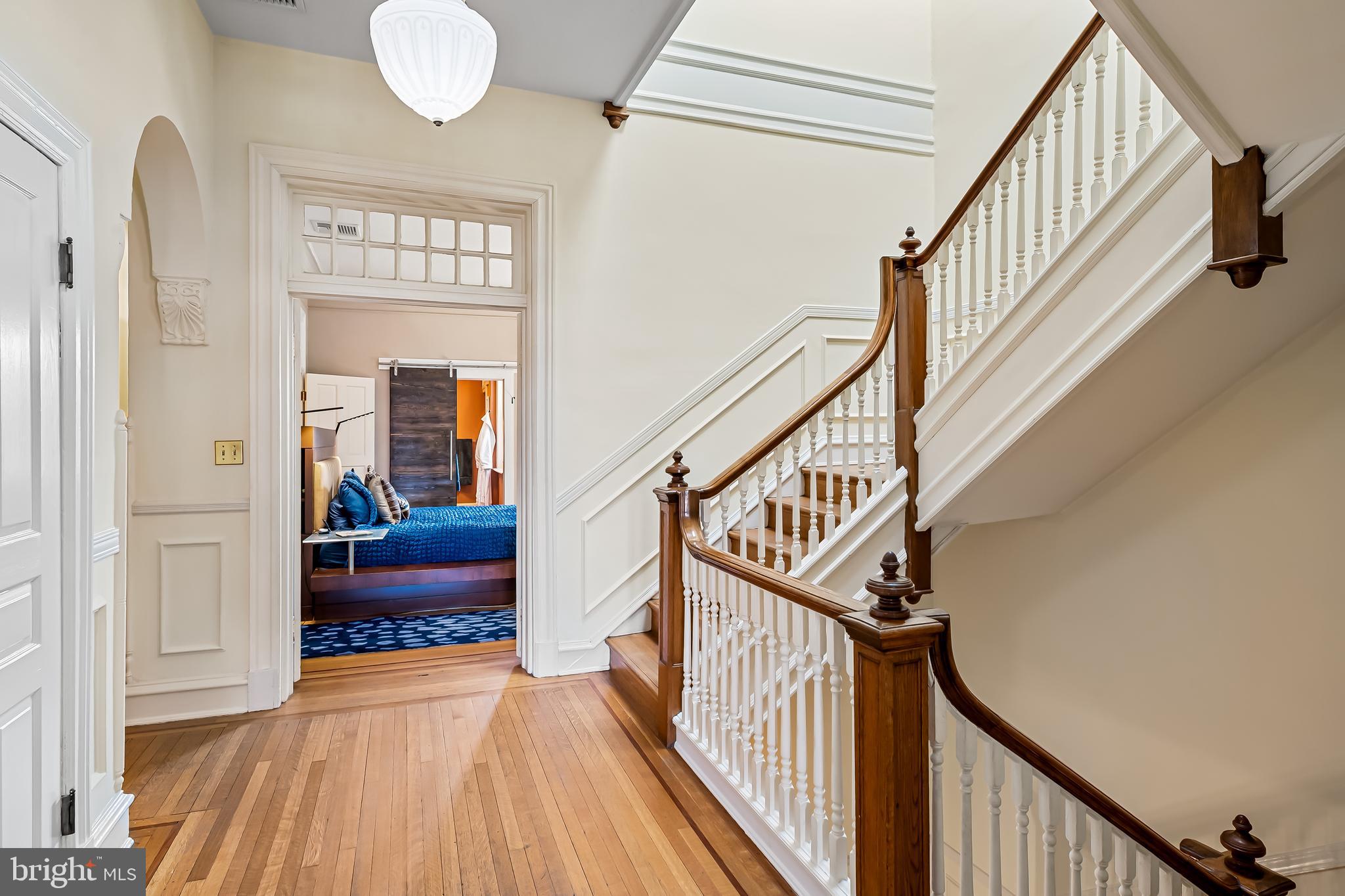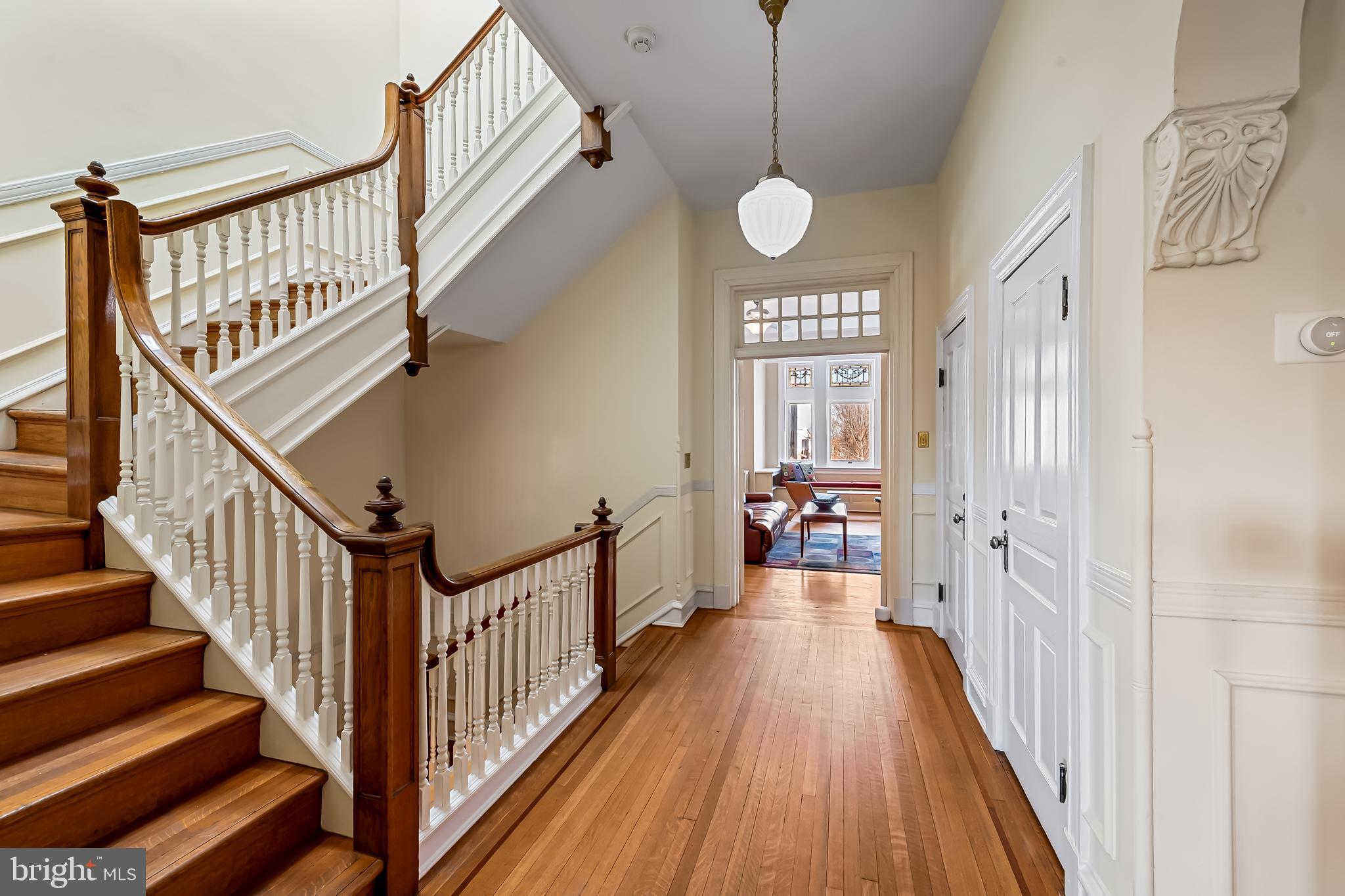 At the top of Eutaw Place, in one of Reservoir Hill's most coveted settings, this exceptional residence is a rare opportunity for the buyer who values historic architecture, gracious scale, and enduring character. Built in 1895, the striking white stone facade, intricate stonework, distinctive Baltimore stained glass, and elegant Juliet balcony create an unforgettable first impression. Inside, beautiful wood floors with inlay, original mantels, abundant natural light, and richly detailed spaces reflect the timeless appeal of a truly special home.