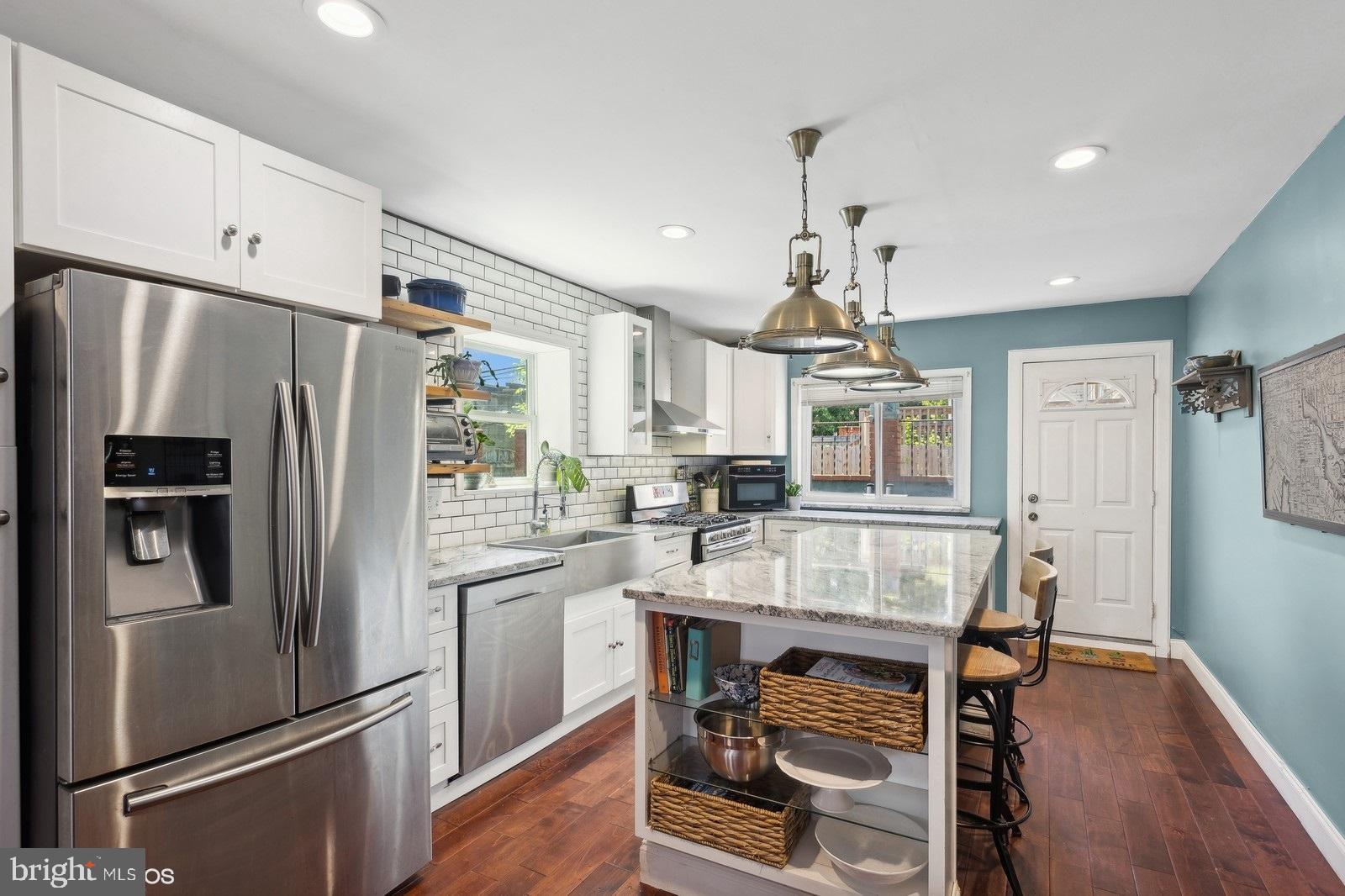 As you step inside this meticulously maintained property, you'll be greeted by a warm and inviting atmosphere that instantly feels like home. The interior has been thoughtfully improved for seamless accessibility between the units. The updated eat-in kitchen is a highlight, showcasing granite countertops, a farmhouse sink, and a spacious island perfect for meal preparation and gathering. Hardwood floors grace the main and upper levels, adding warmth and charm throughout the property.