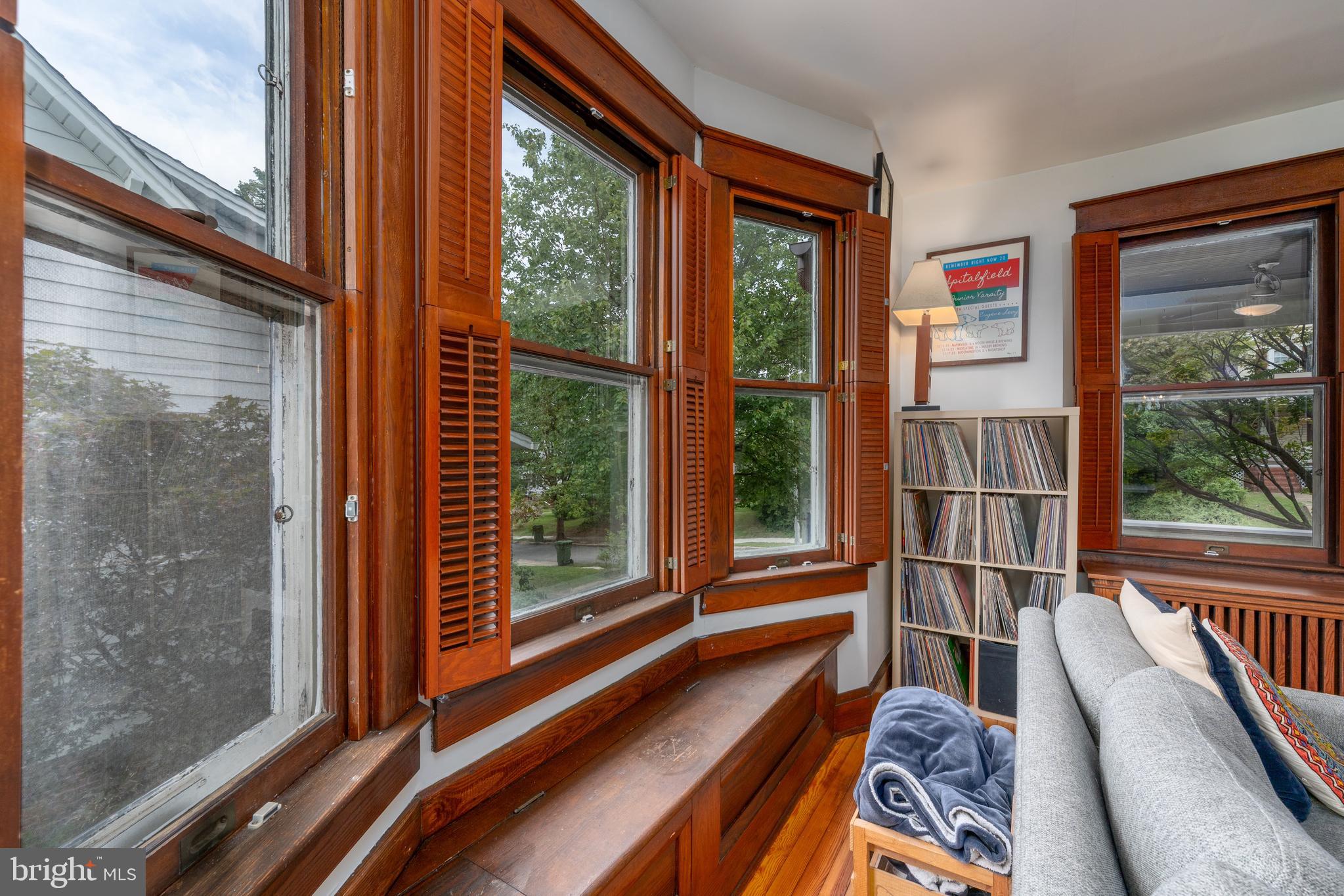 From the moment you enter, you'll notice the home's character and warmth. Lovingly cared for by the current owners, it showcases original details that have stood the test of time, including gleaming hardwood floors, unpainted wood trim, working wooden shutters, and colorful stained-glass windows that fill the rooms with light. These details lend a sense of authenticity and history that is increasingly rare to find intact.