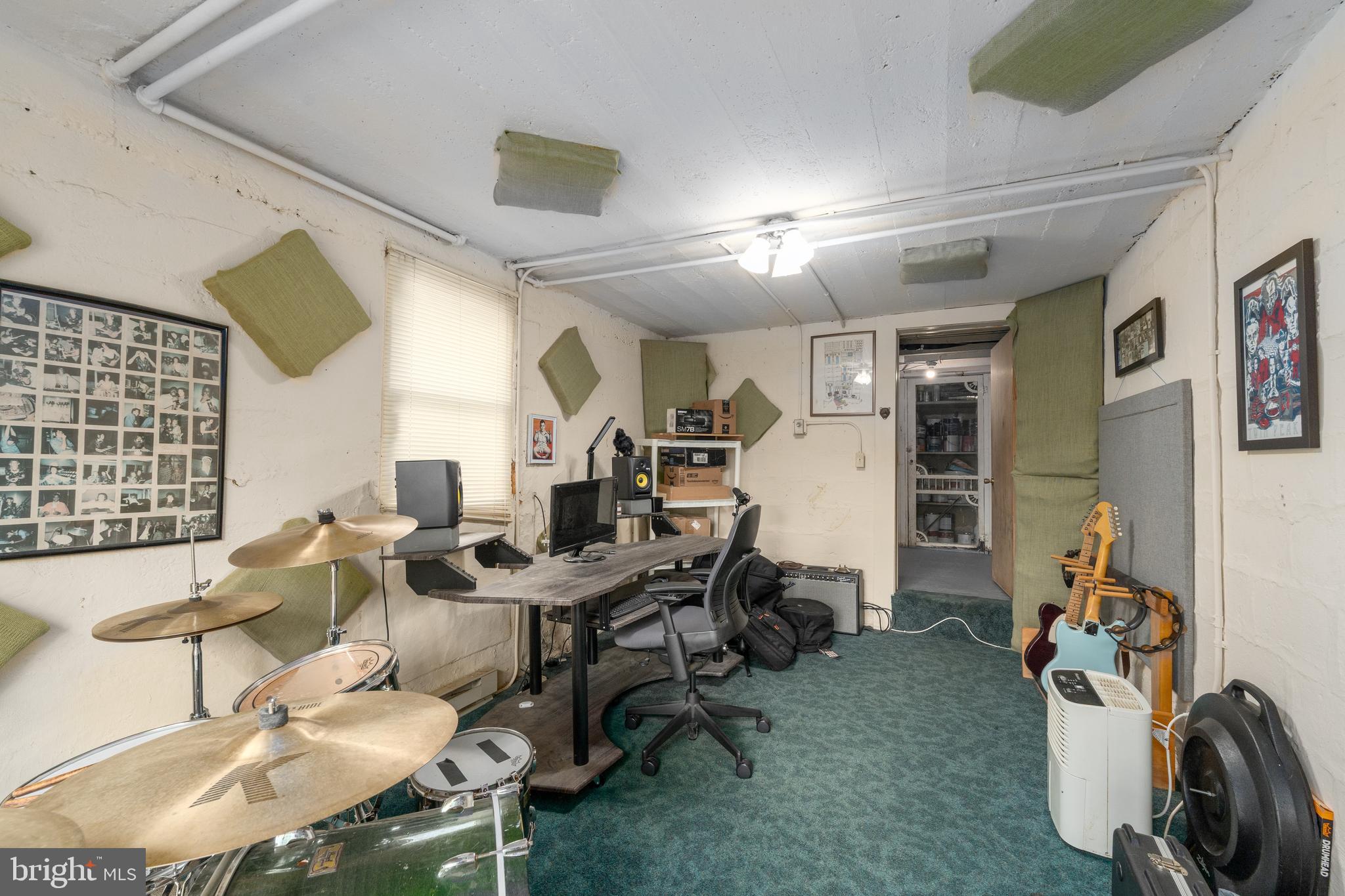 The basement, though unfinished, offers surprising versatility. In addition to ample storage, there is a dedicated music studio currently in use by the owners, as well as a second full bath ready for updating and a laundry area. A recently installed high-efficiency gas boiler ensures comfort and energy savings throughout the year.