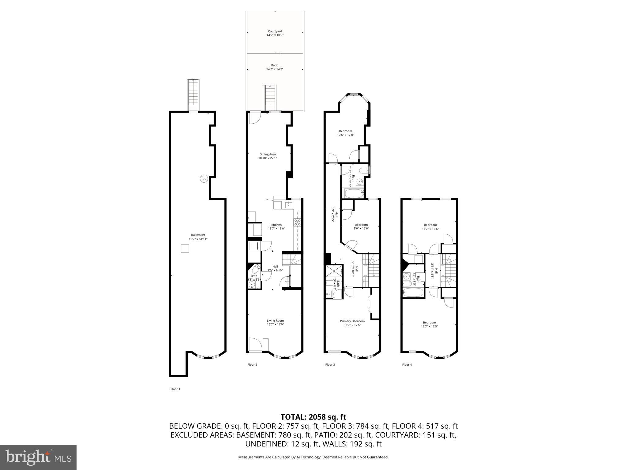 Upstairs, the second floor offers a tranquil primary suite with private en-suite bath, plus two additional bedrooms and a full hall bath. The third floor includes two large bedrooms and another full bath, providing flexible options for guests, a home office, or creative studio space.