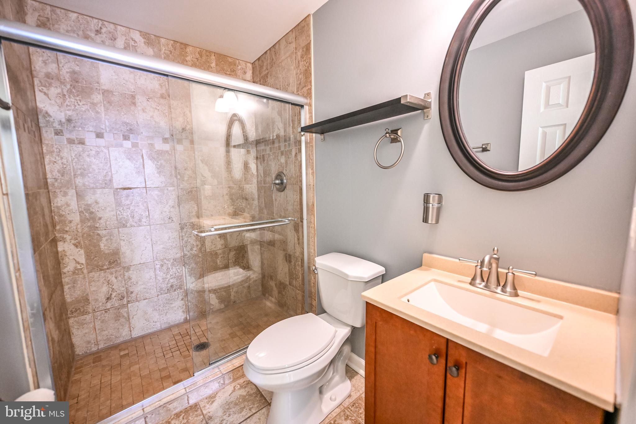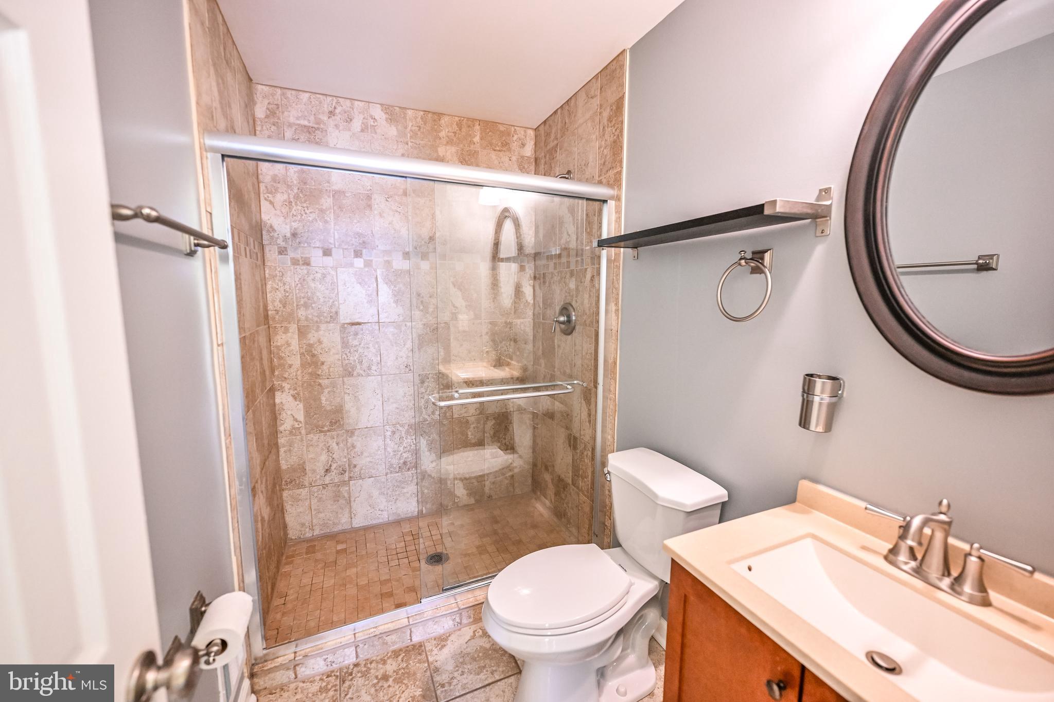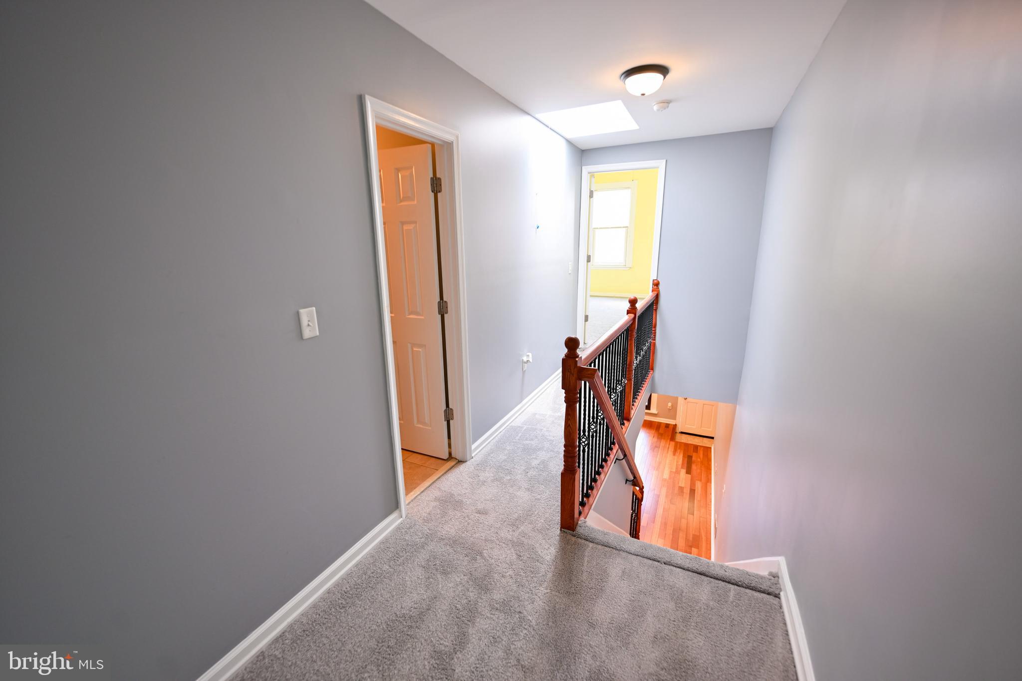 Upstairs, the second level hosts a serene primary suite with an en-suite bath boasting a large tiled shower. A second bedroom is located at the opposite end of the hall, adjacent to a full bathroom with a tub/shower combination. New carpet has been installed.
