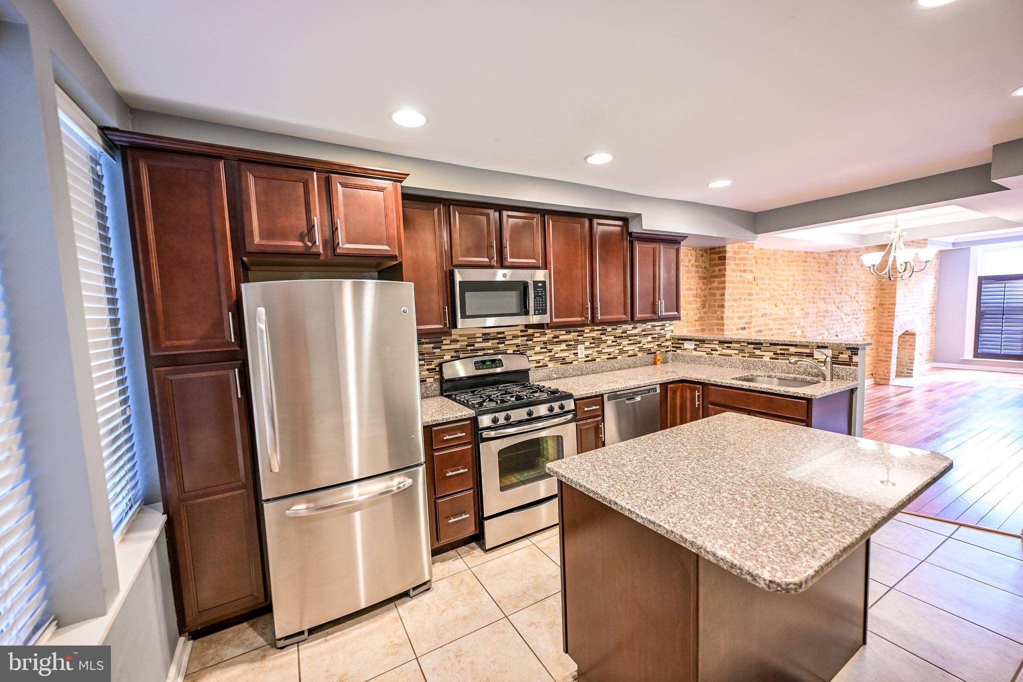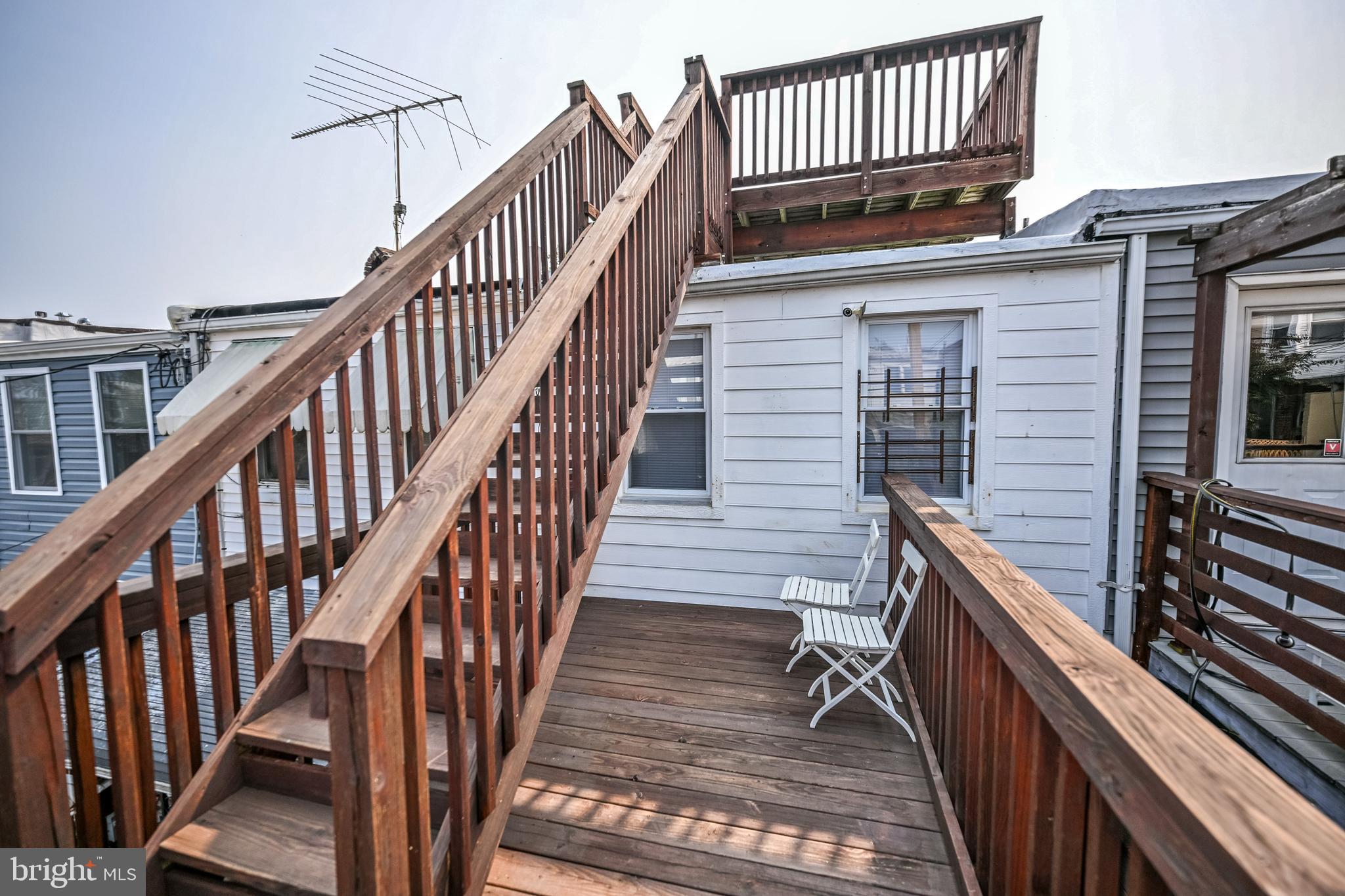 Natural light pours into the spacious living room through two oversized front windows adorned with charming louvered shutters. The open dining area easily accommodates a table for six, leading into a beautifully appointed gourmet kitchen featuring granite countertops, stainless steel appliances, and ample cabinet and counter space. A rear door off the kitchen offers convenient access to the private parking pad and stairs to a multi-level deck--culminating in a stunning rooftop retreat.